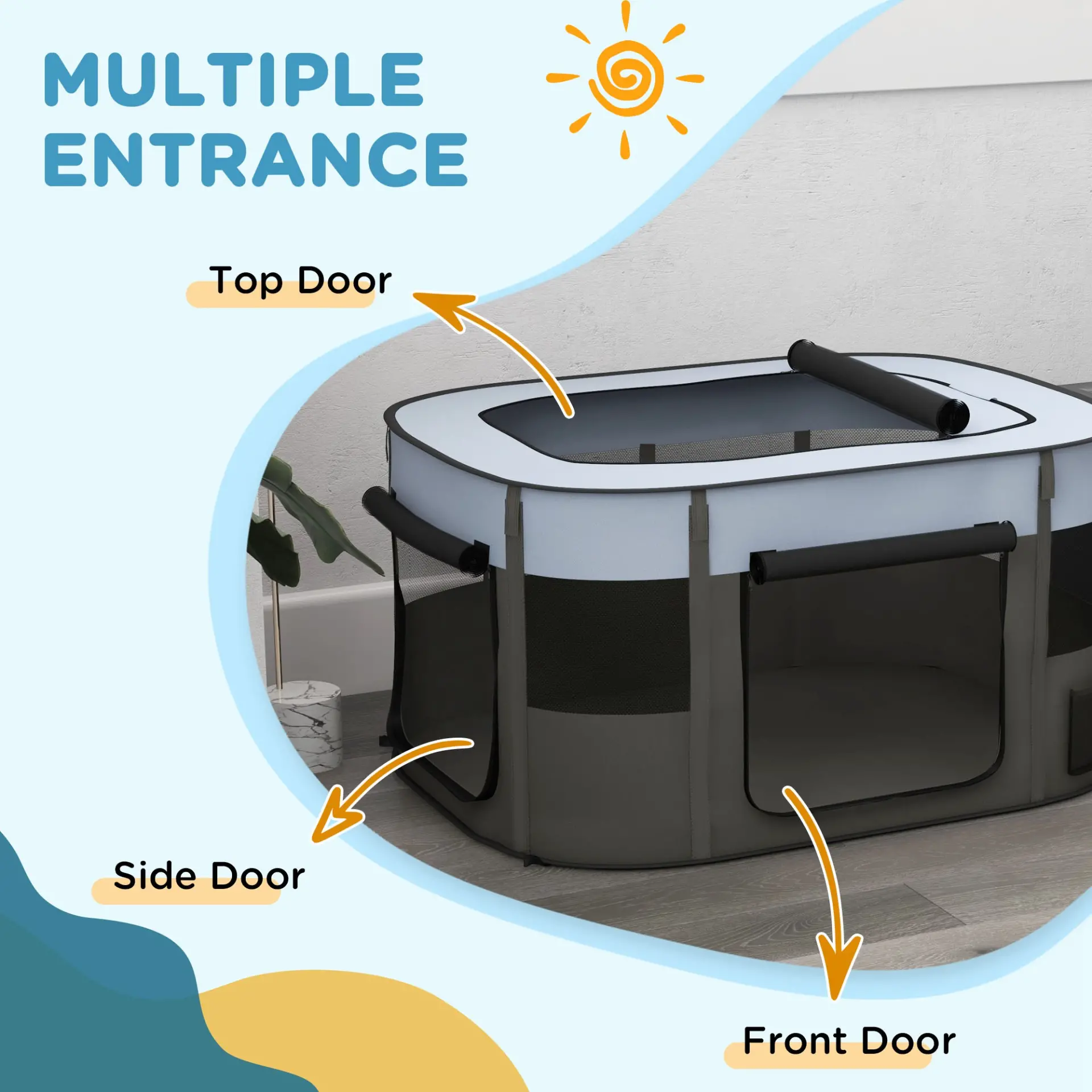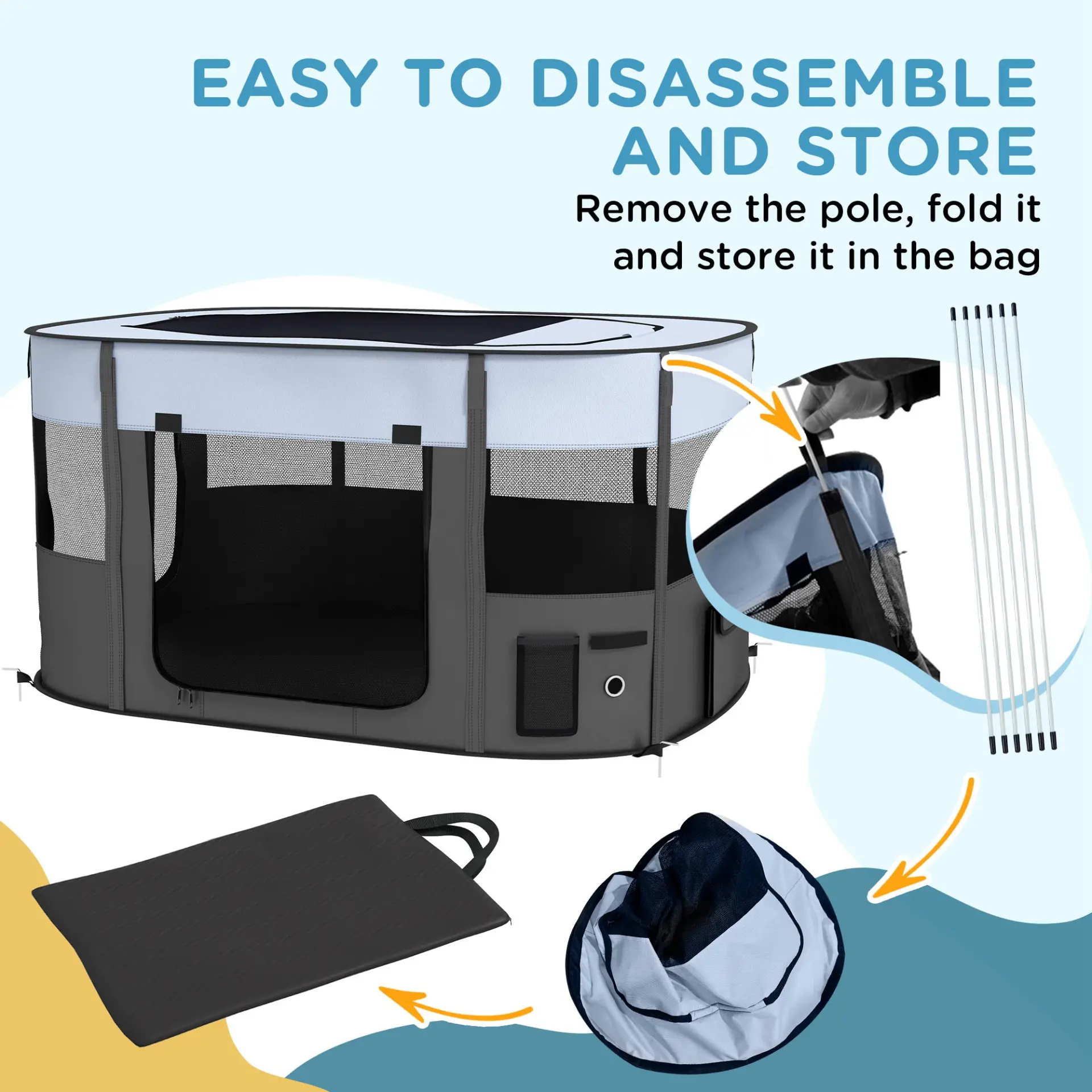 - Foldable: Fold this dog pen for space-saving storage and effortless travel. There are storage bags on the windows for keeping toys and essentials nearby.