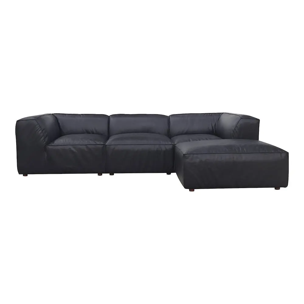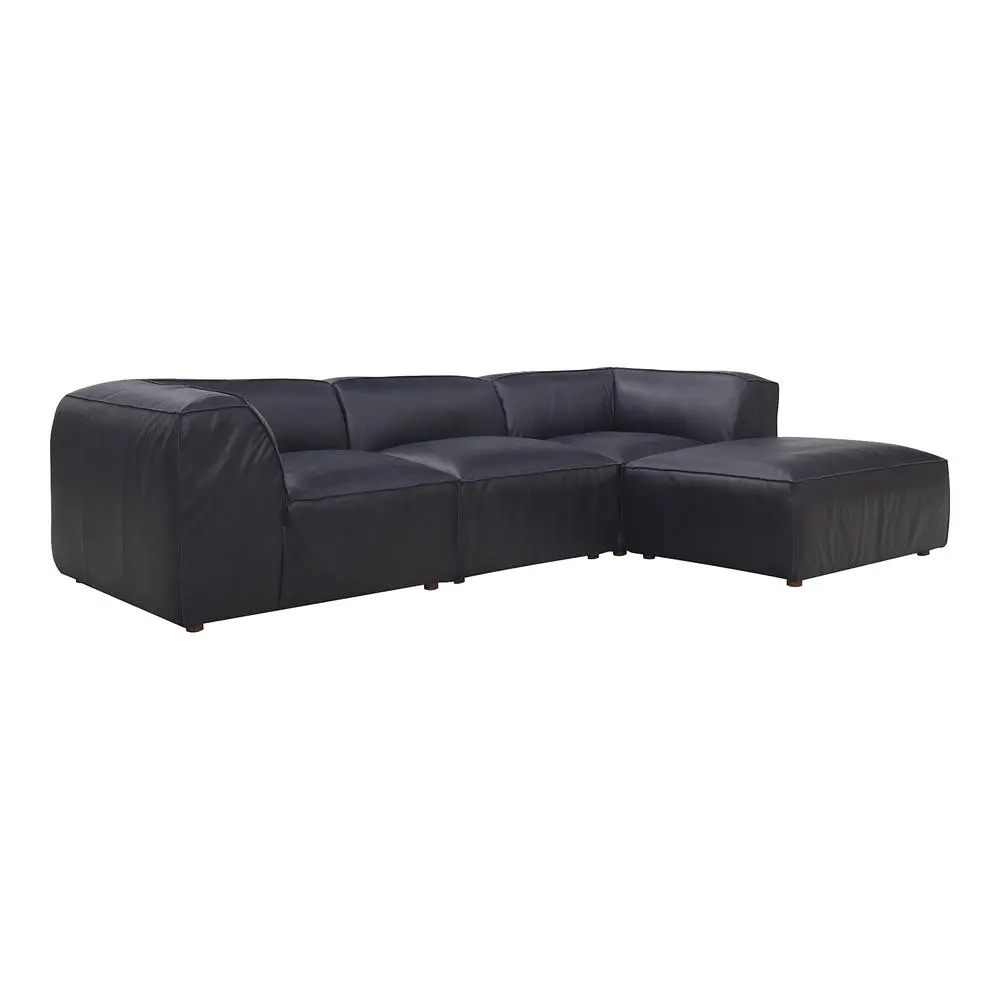 The Form modular sectional is a perfect example of how different shapes and moveable pieces can support a social setting, comfortable lounging, as well as a casual workday. Configure Form into a collage of comfort as the collection includes slipper and corner chairs, as well as an ottoman. All items contribute to a build for flexible living, whether you require an entire L sectional, cozy nook, or a more private relaxation corner. Contemporary in both style and function, Form features top-grain leather upholstery that will age into a beautiful patina, reverse stitching accents throughout, and emphasis placed on its plump, slightly rounded silhouette with feather and fiber-fill cushioning.