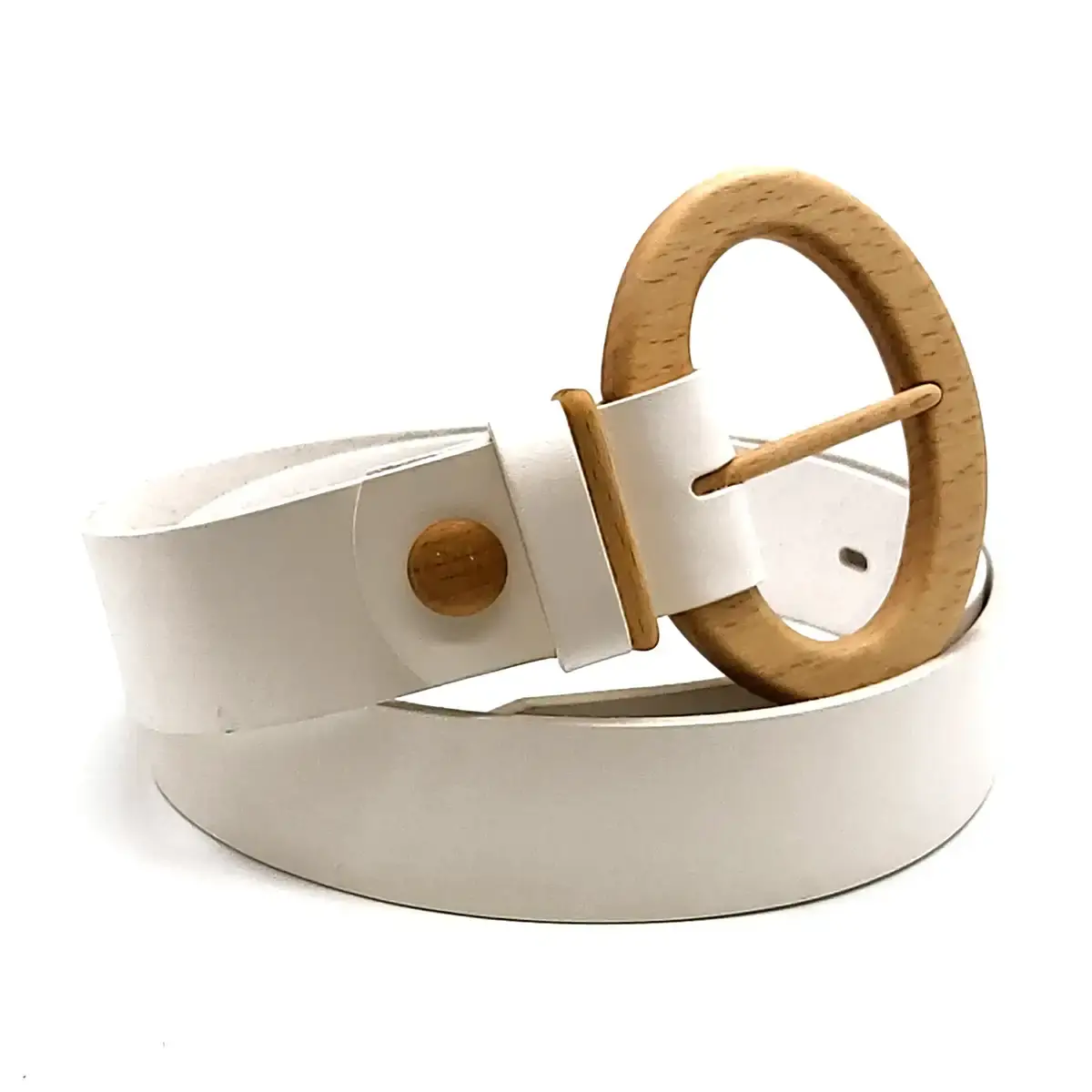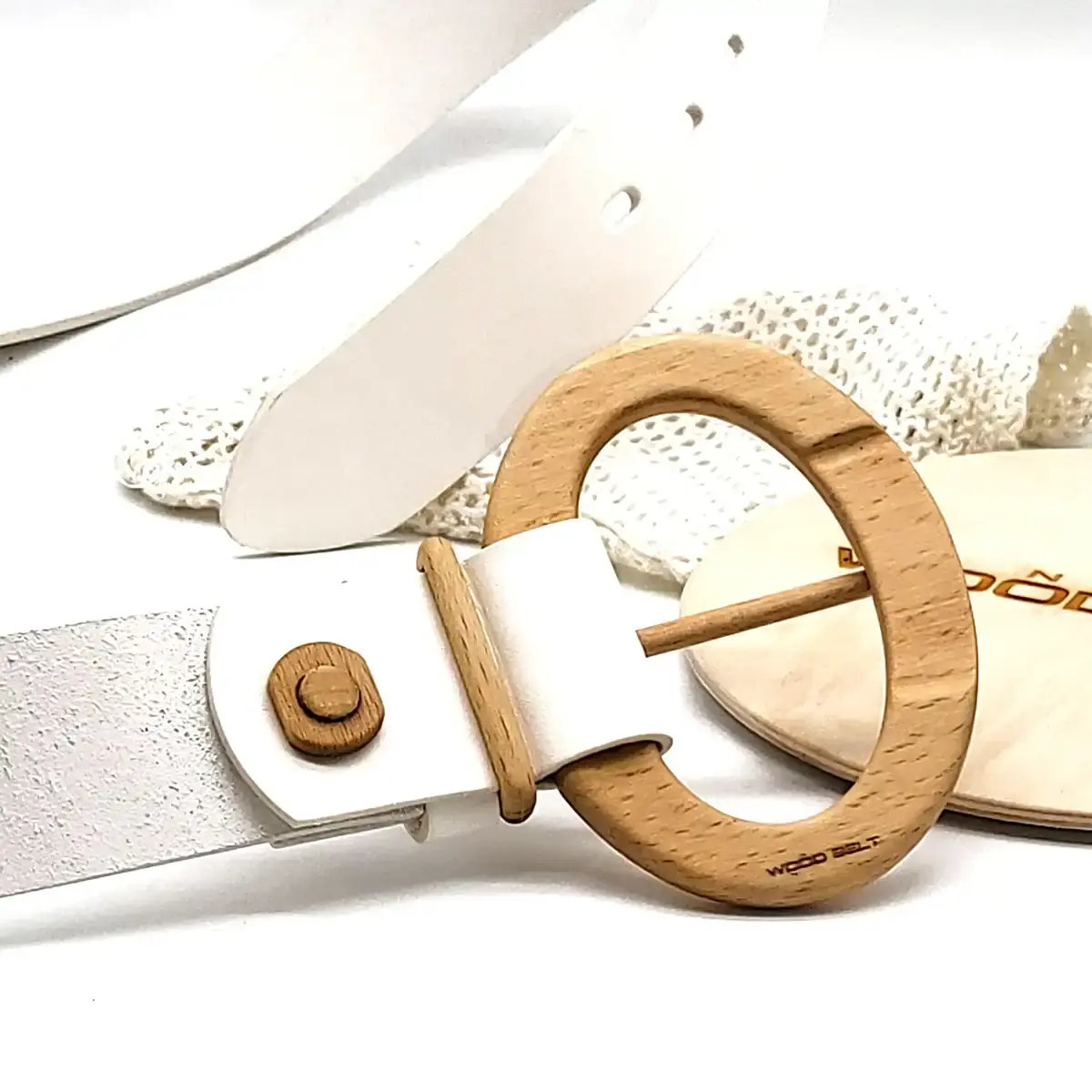 Brown belt material color fits great with wooden buckles from maple and beech.