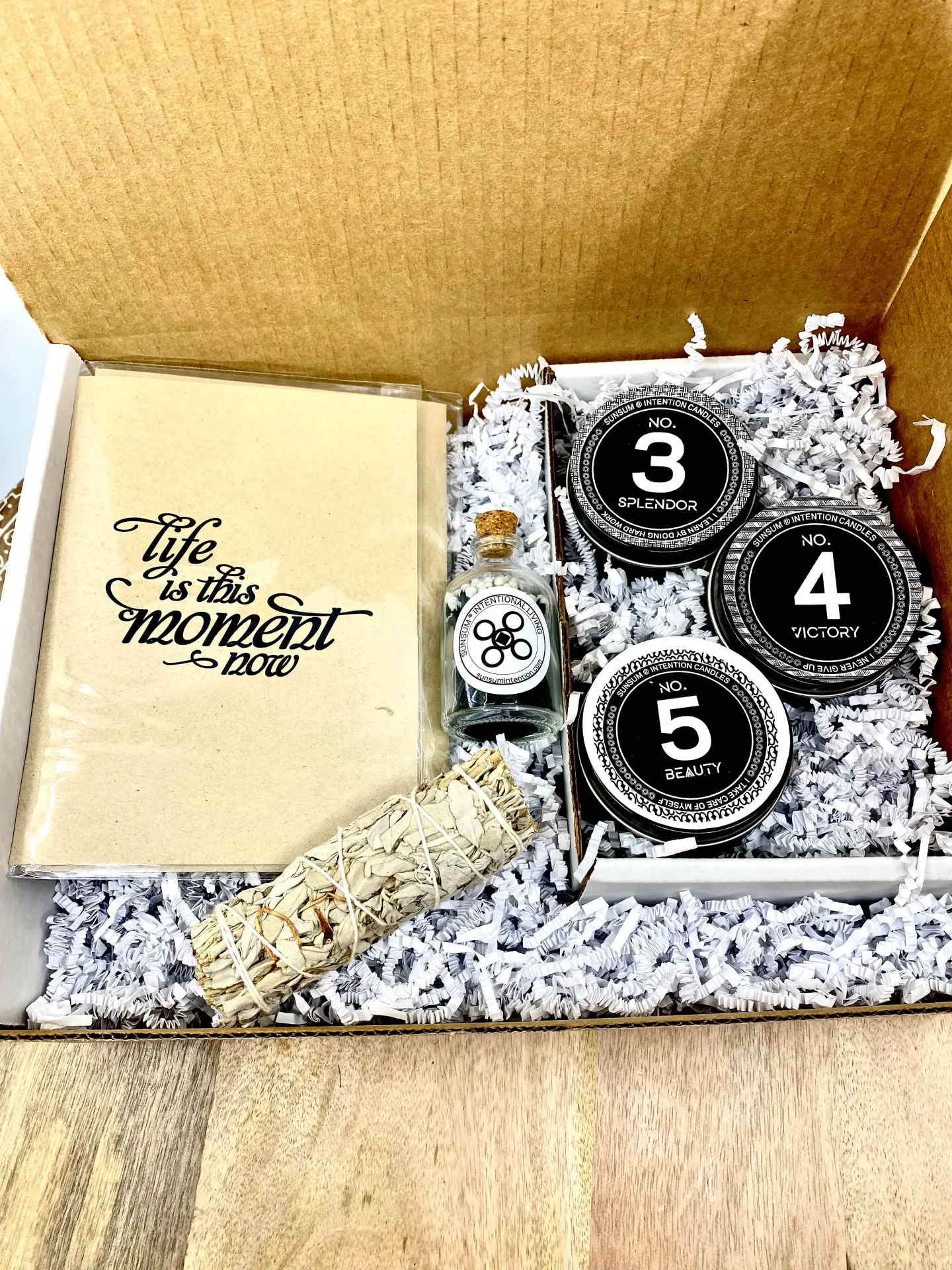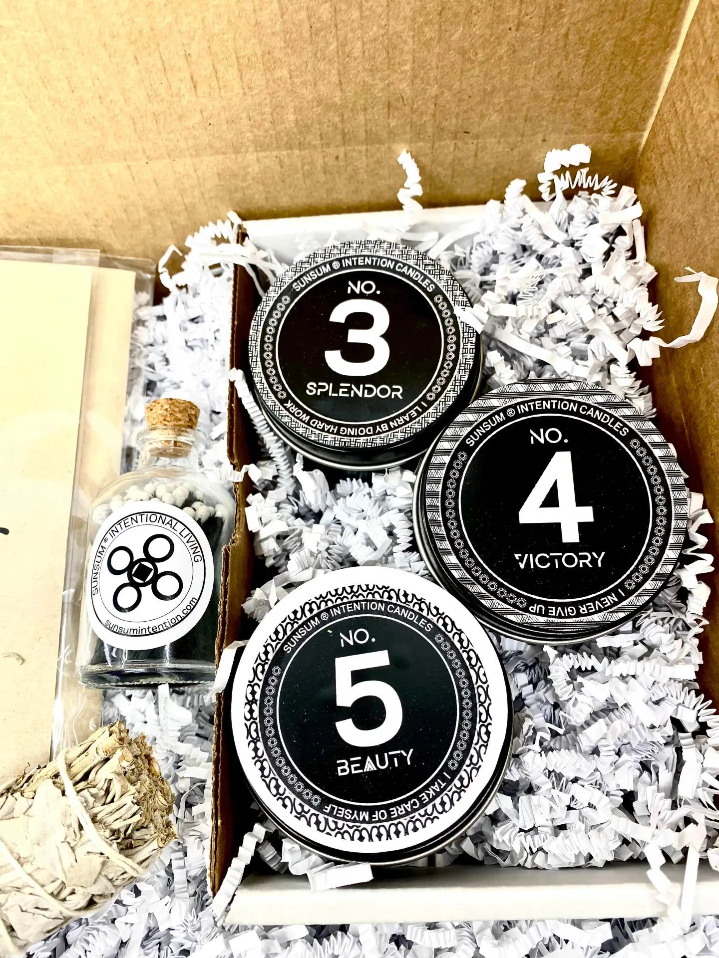 Finally, find beauty in yourself and how it relates to your journey and relates to others with the No. 5 – Beauty ( 4 oz ) intention candle. Practice the anchoring phrase, ” I take care of myself”, while the sensual aromas of rose, papaya, and sandalwood fill your space.