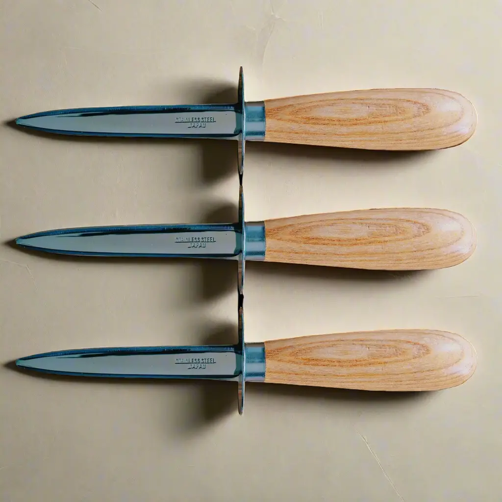 Enhance your oyster shucking experience with the Ginza Steel Premium Oyster Knife Set, expertly crafted in Japan. This set of three oyster knives includes different sizes and shapes to handle any type of oyster with precision. Featuring sharp, durable stainless steel blades and ergonomic handles, these knives ensure safe and effortless shucking. Perfect for seafood lovers, professional chefs, and home kitchens, this set combines functionality with Japanese craftsmanship. Ideal for shucking oysters, opening shellfish, and enjoying fresh seafood, this oyster knife set is a must-have addition to your culinary tools.
