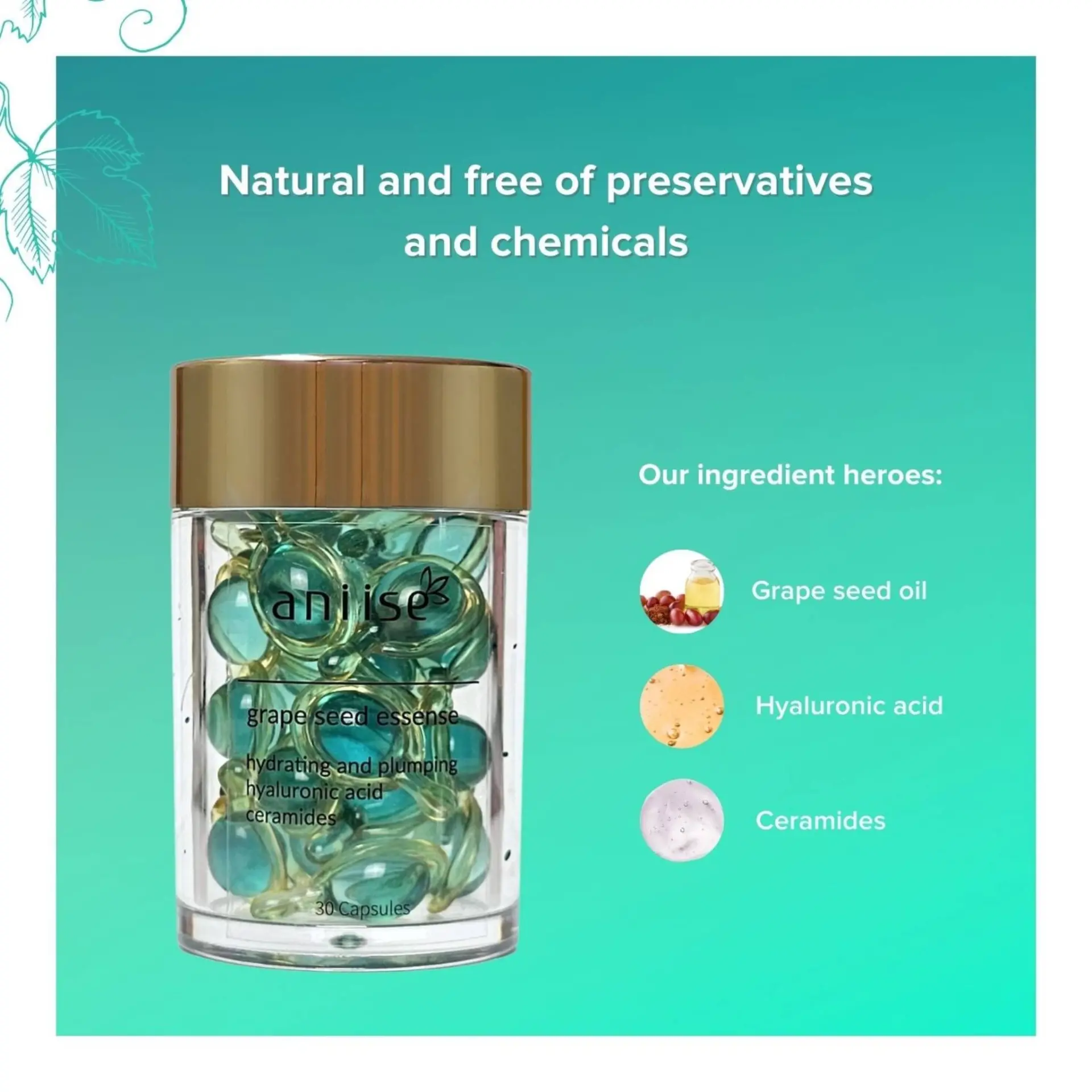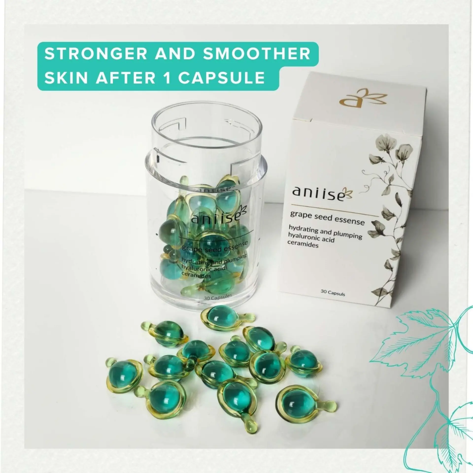 Experience the magic of our Grape Seed Oil Ceramide Capsules, your gateway to achieving a radiant and effortlessly youthful complexion! These capsules are designed for all skin types, packed with potent ingredients like Grape Seed Oil, Hyaluronic Acid, and Ceramides. The precision-sealed capsules preserve the product’s natural properties while ensuring maximum potency and effectiveness. Plus, they’re eco-friendly, being 100% biodegradable.