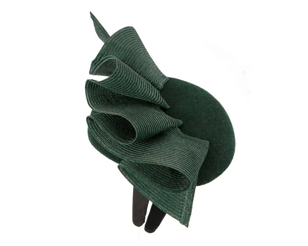 Created in the heart of Melbourne by our experienced milliners, we are proud to present bespoke dark green winter pillbox racing fascinator by Fillies Collection. Classic pillbox base embellished with PU wave and placed on the headband.