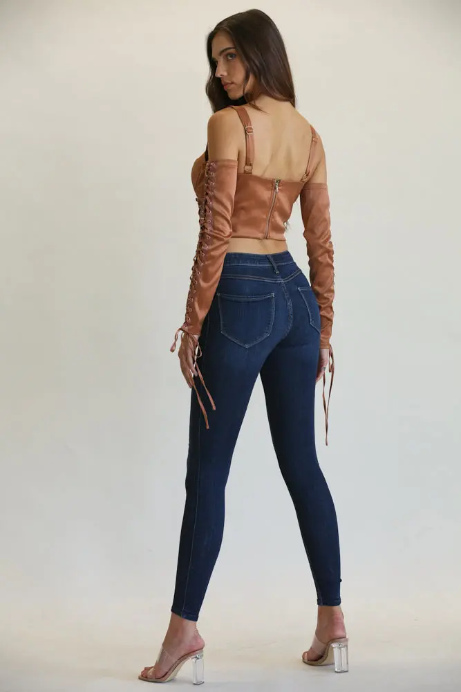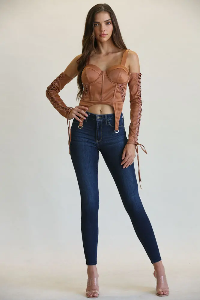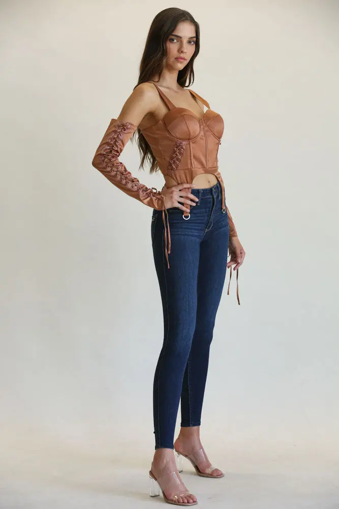 – DETACHED OFF-SHOULDER SLEEVES WITH LACE UP DETAIL