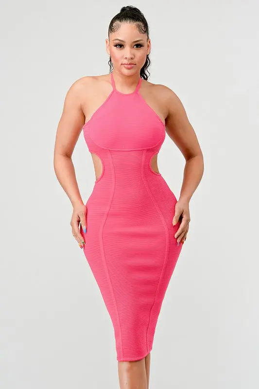 HALTER HOLLOW OUT BODYCON BANDAGE DRESS