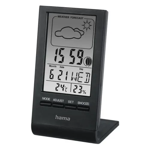 Hama TH-100 LCD Thermo/Hygrometer – Thermometer, Hygrometer, Barometer, Weather Forecast, Moon Phases, Date/Time, Alarm, Black