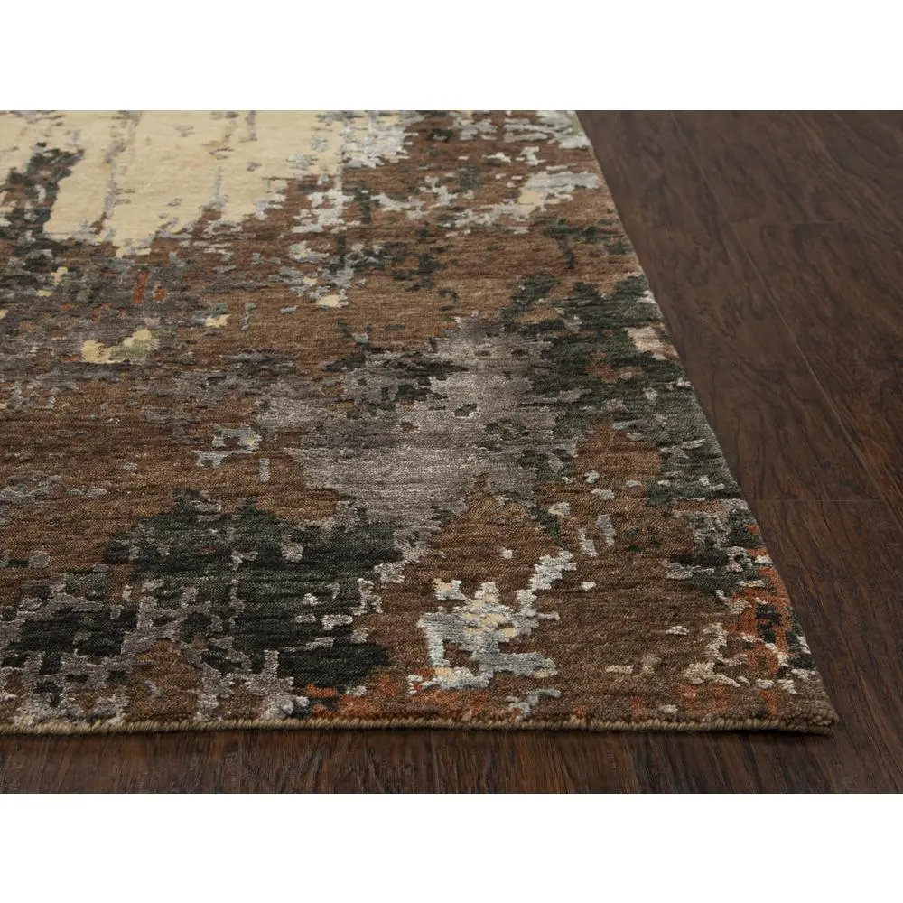Bring the wonder of nature to your transitional style home decor with the rich earth-tones of brown, moss green, grey, beige, rust, and ivory found in this Alora Decor Noble Abstract Rug. This piece is hand-crafted of a blend of 80-percent hand-spun wool for warmth and 20-percent viscose to add a luster to the fibers. This rug features multi-level pile that is hand-carved and hand-knotted for added texture.