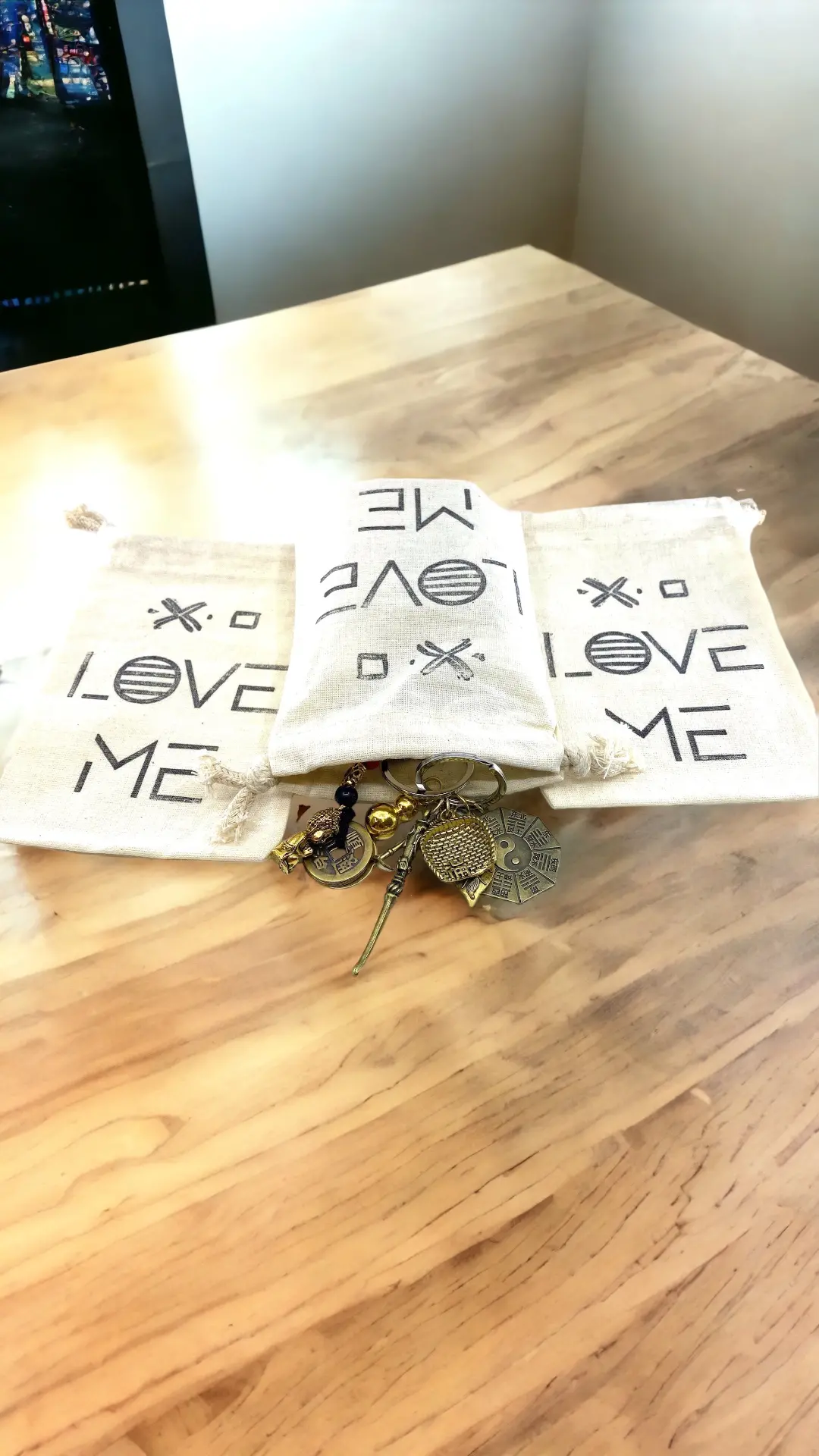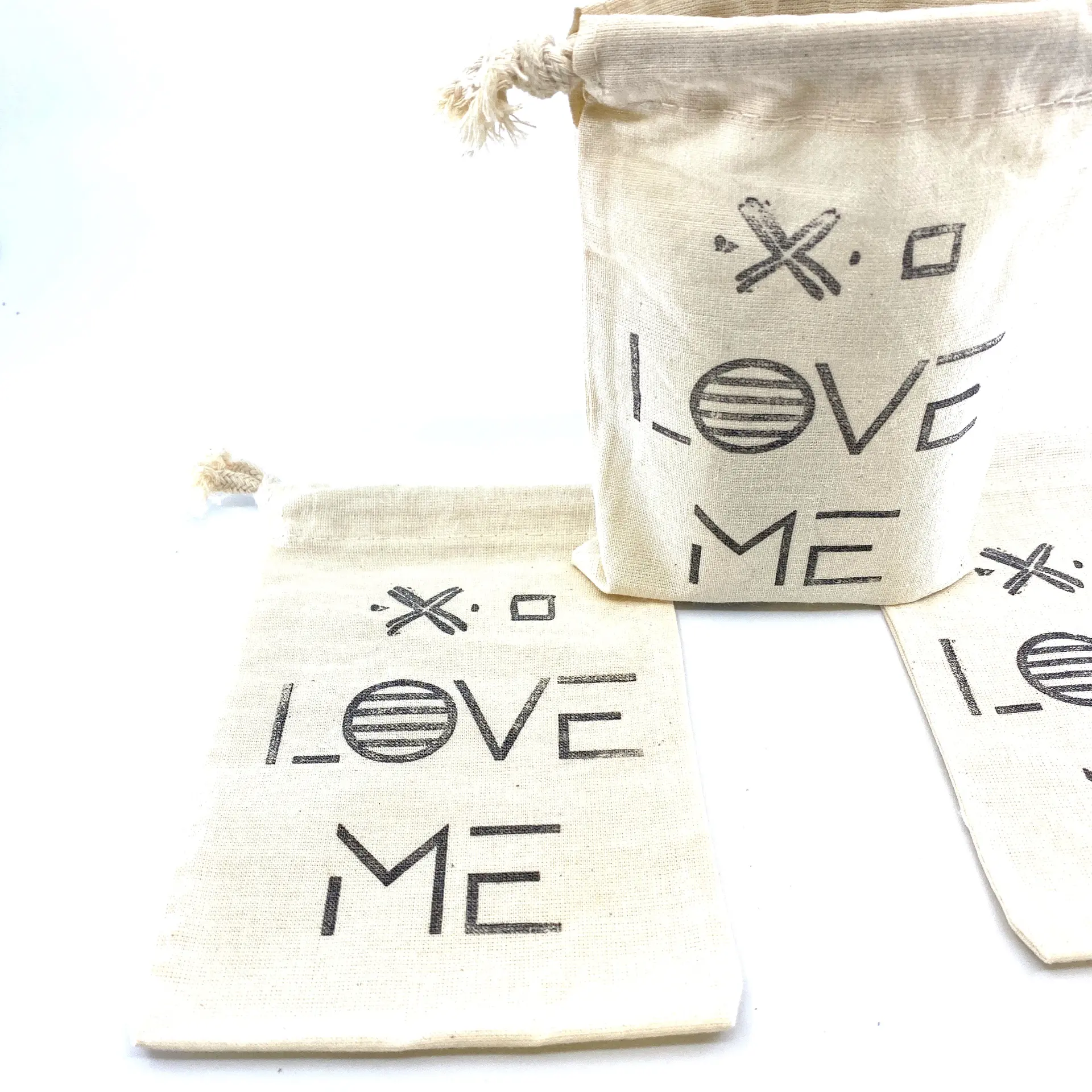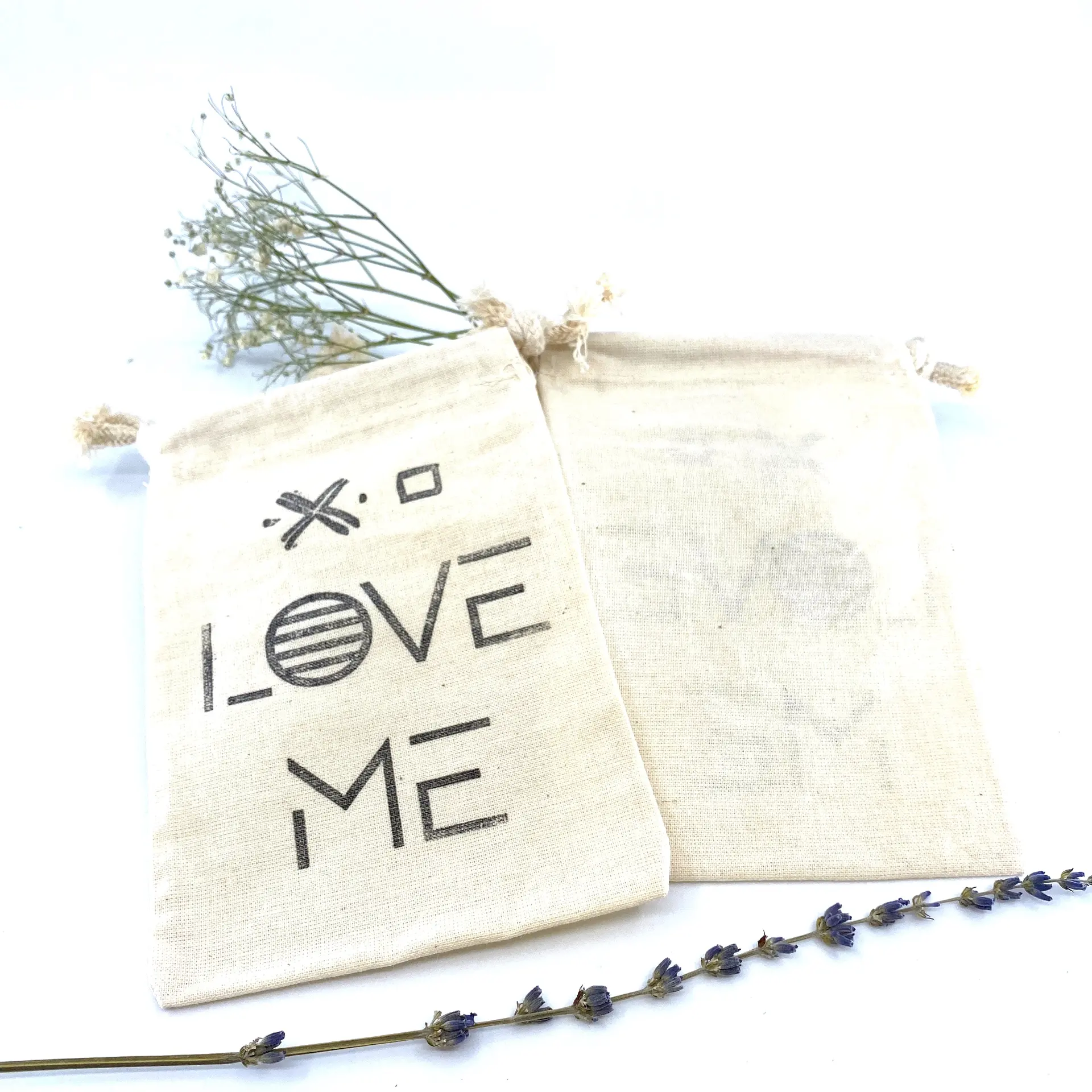 The Hand Stamped, Love Me, Cotton Drawstring Pouches 4″ x 6″ reminds us that love is a personal experience that starts with how you feel about yourself. Each drawstring pouch is hand stamped with eco-friendly pigment ink.