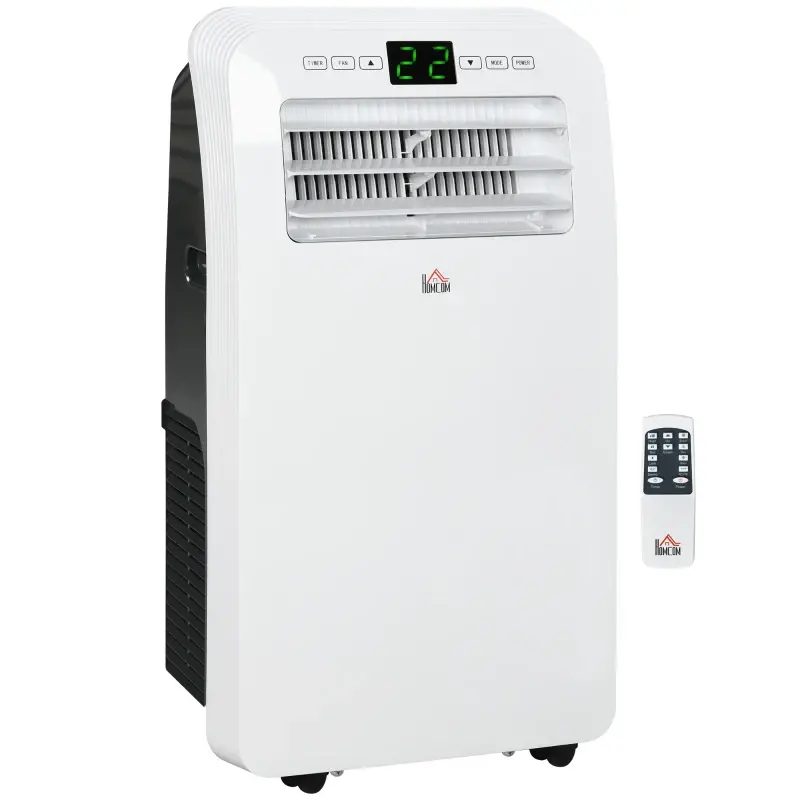 Escape the heat and embrace comfort with this HOMCOM portable air conditioner! This 3-in-1 design cools your space between 16-30, as well as dehumidifying and fan. It’s suitable for spaces up to 28. The energy-efficient design makes it a real electric saver, complete with and LED touch panel and remote for duo control.
