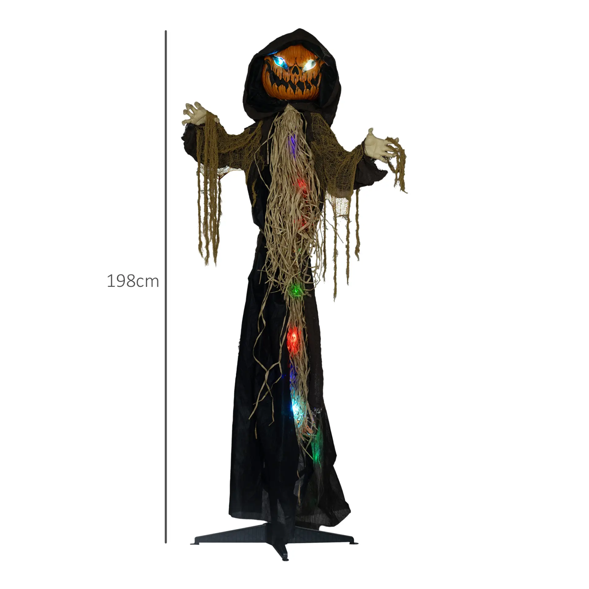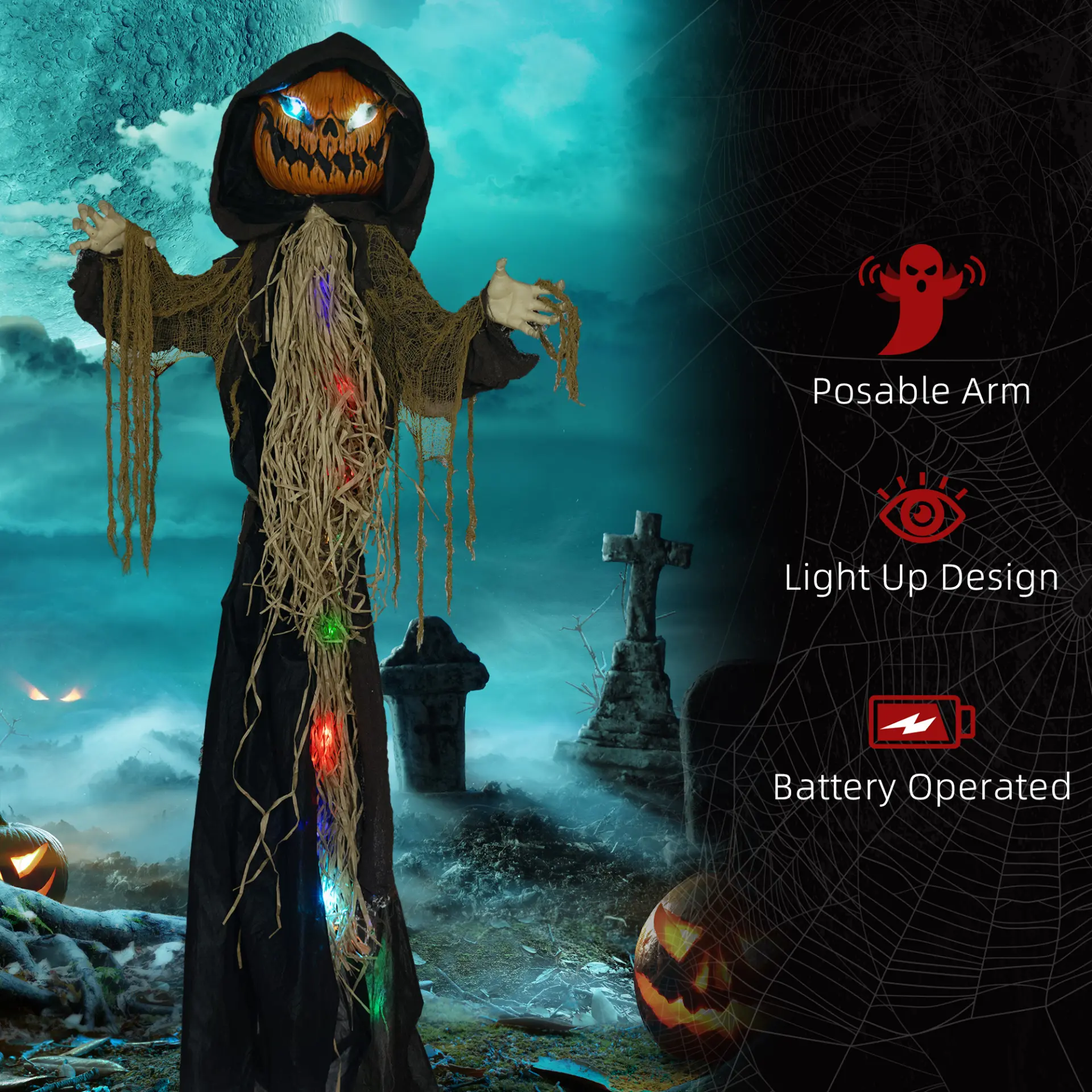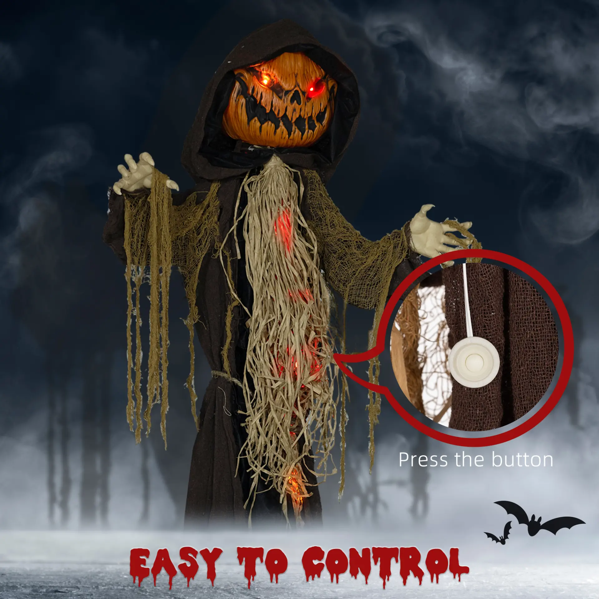 Unleash spine-chilling thrills with the HOMCOM Halloween Prop, featuring a sinister straw pumpkin man whose arms contort as you desire. Triggered by button, this fiendish figure twists its body, boasts eerie colourful glowing eyes and body, making it a standout Halloween outdoor decoration for any haunted house or outdoor Halloween decor.