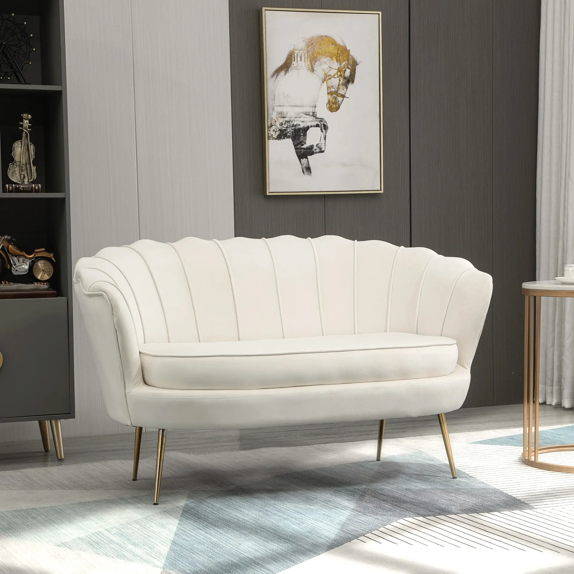 - Elegant design: This two seater sofa features a graceful curved petal back like a flower, matching with the bright gold legs to add a touch of elegance to any rooms.