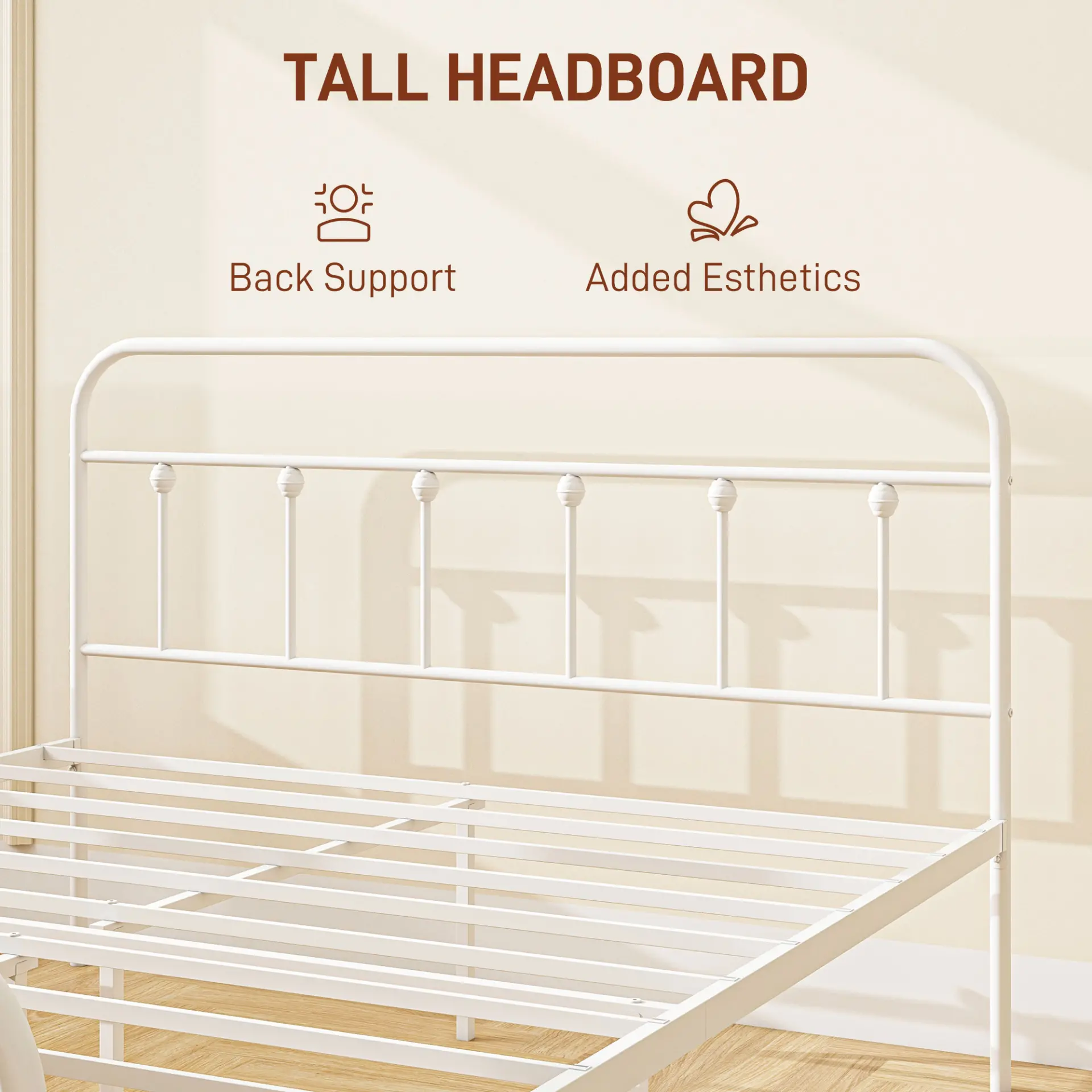 HOMCOM 5ft King Platform Bed Frame with Underbed Storage Tall Headboard Steel Slat, No Box Spring Needed, Easy Assembly in White