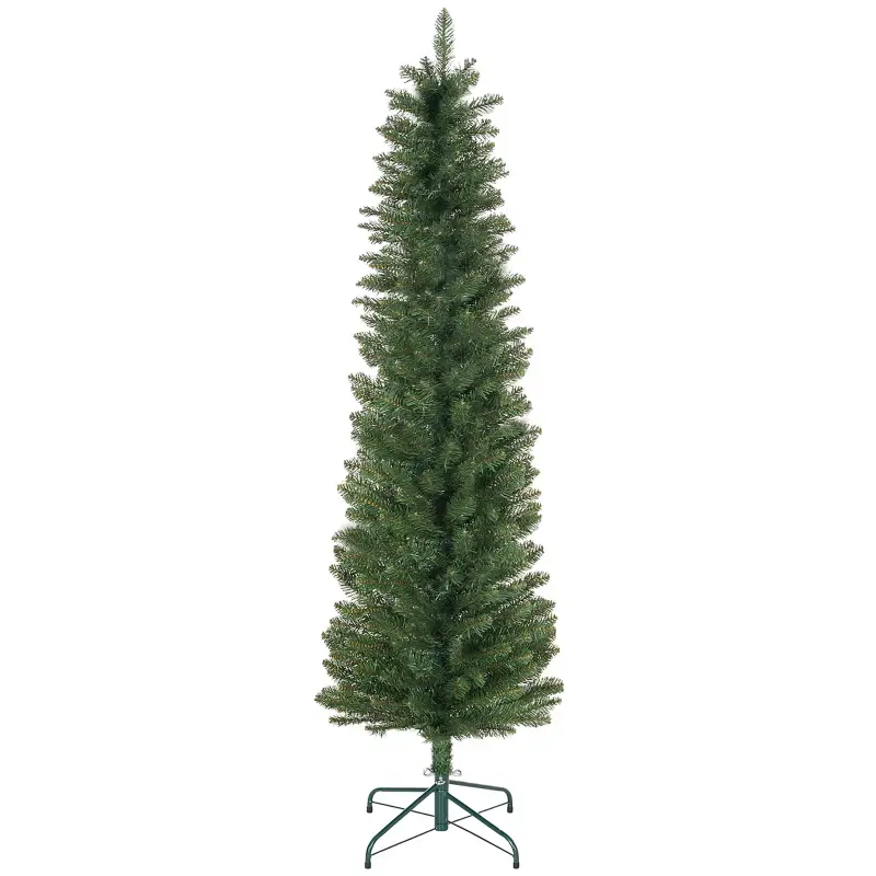 A simple and slimline artificial christmas tree, this HOMCOM piece is fit for any space. Made from plastic for durability, and to be used the following seasons, the flame retardant finish gives you peace of mind. This slim Christmas tree mimics a real tree, making it look the real deal when it stand as your home centrepiece. A bare artificial christmas tree mean you dress it up with your favourite decorations and lights.