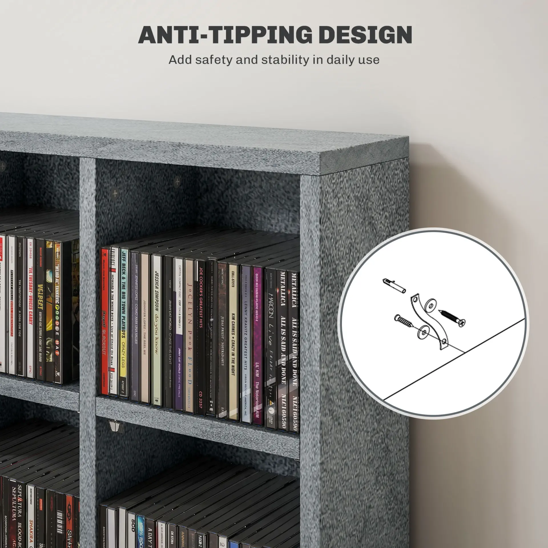 - Anti-tipping design: Back hardware to attach to the wall safe for homes with children and pets