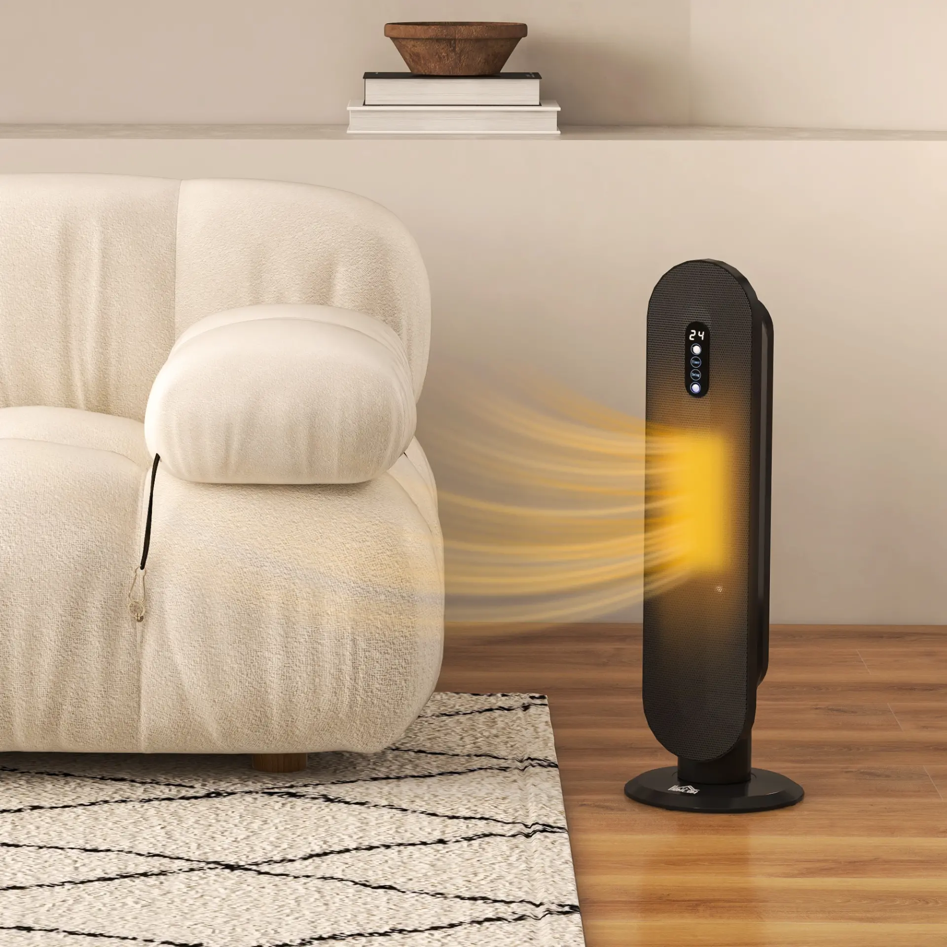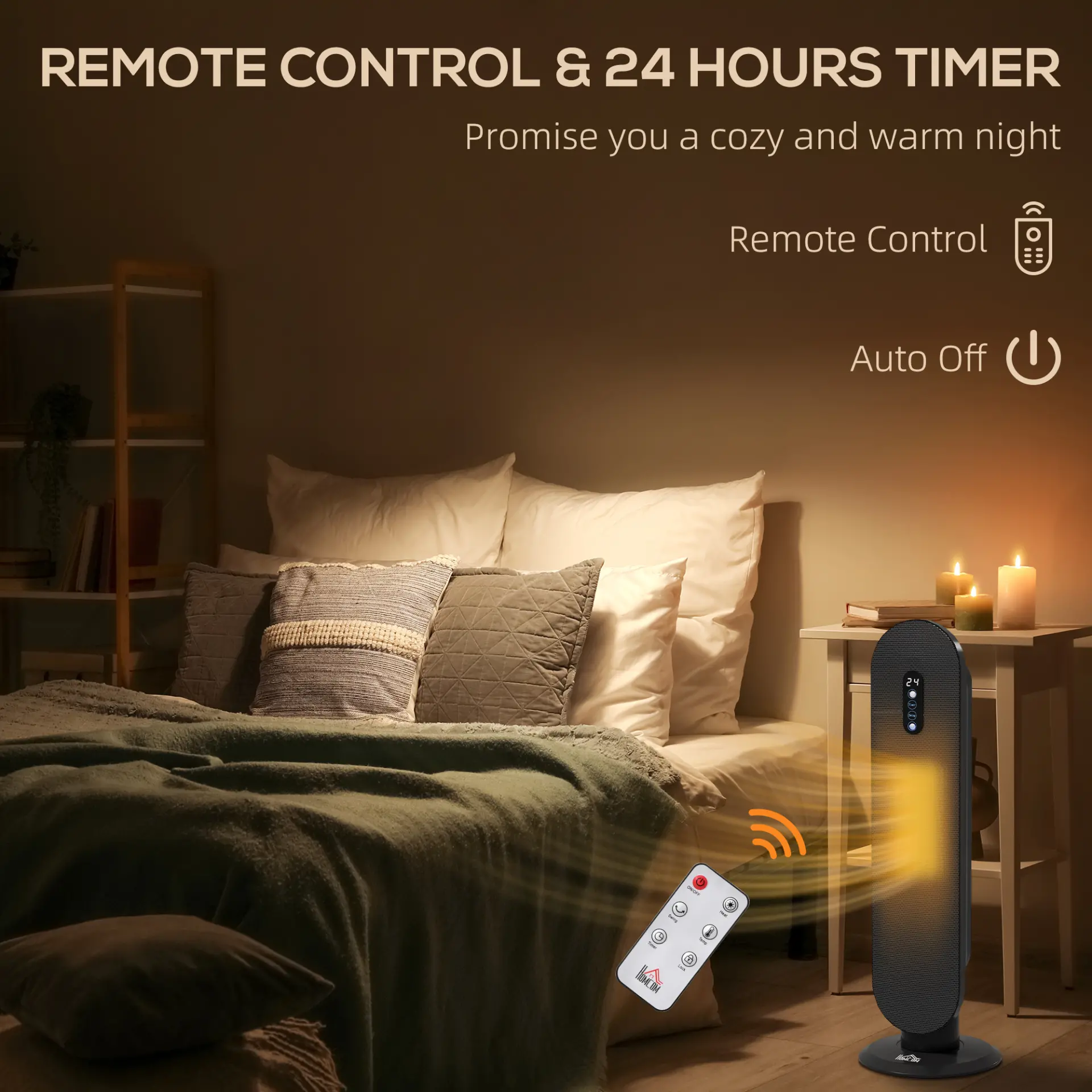 HOMCOM Ceramic Space Heater, Indoor Tower Heater with 2 Heat, Oscillation, Remote Control, Timer, Tip-Over & Overheating Protection, 1200W/2000W in Black