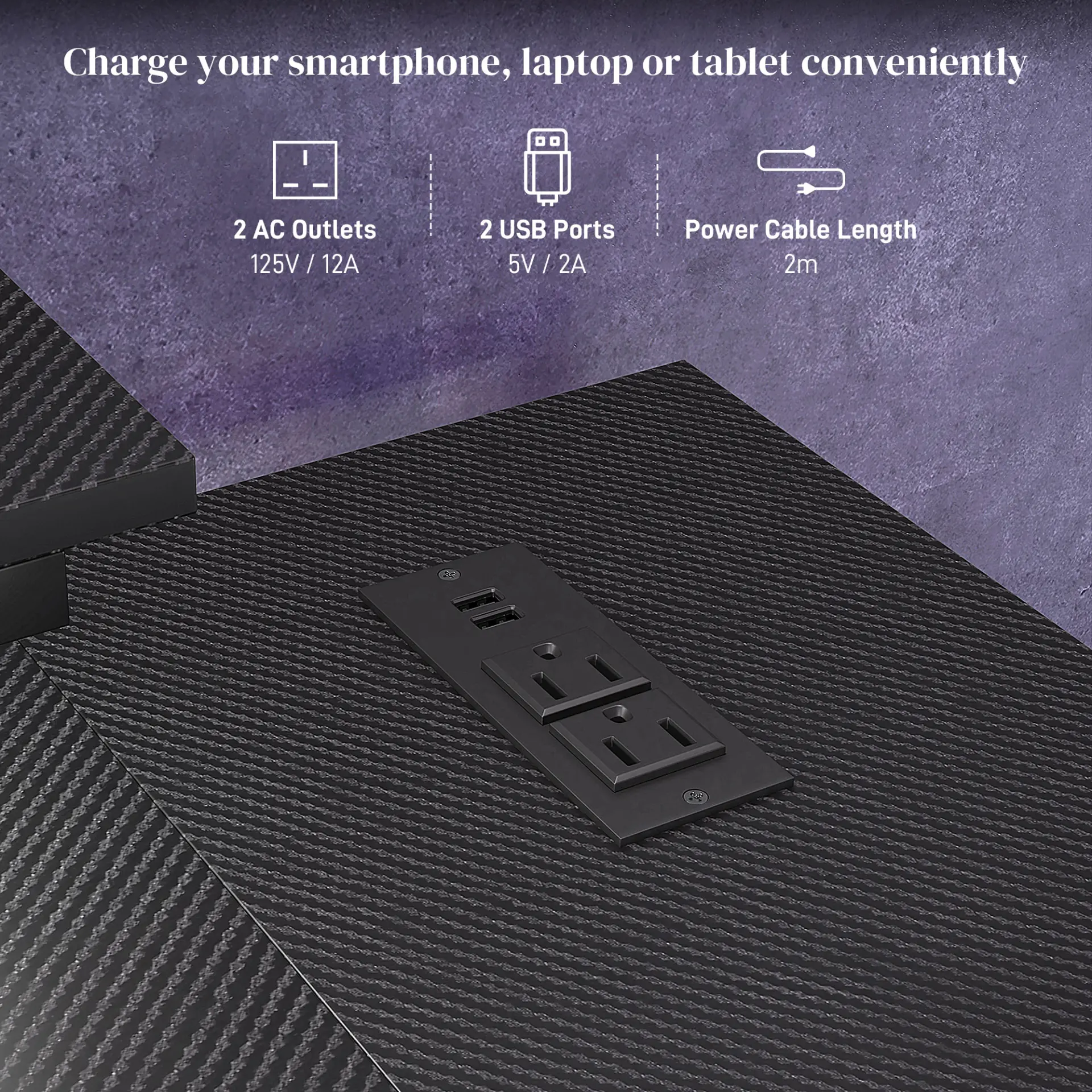 • Multi power outlets: Two power outlets and two USB ports, so you can keep devices powered and charged together on this computer table