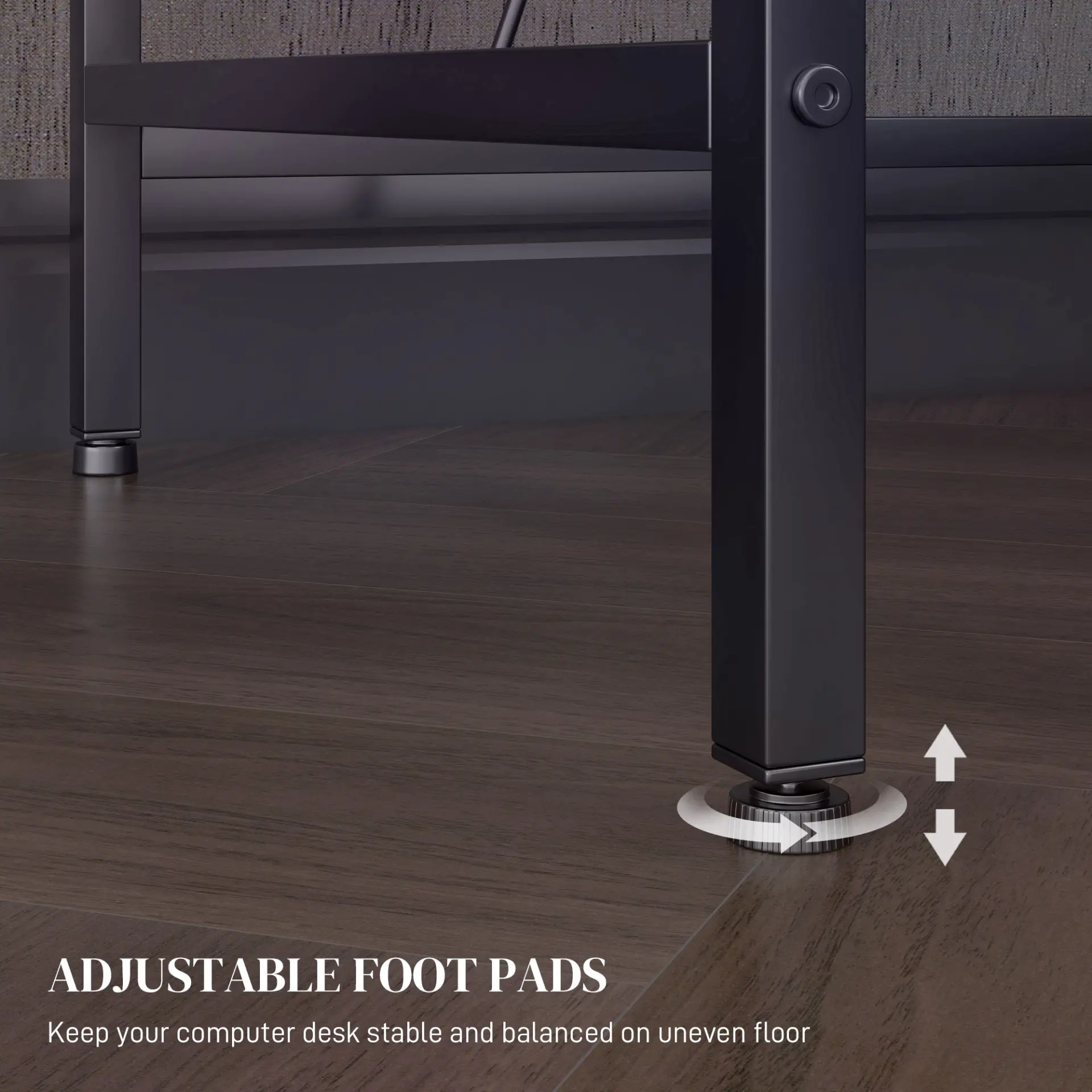 • Steel frame, in reversible ‘L’ shape: Set corner desk up left or right – it’s easy to fit in the space you want. Powder coated metal gives this corner computer desk a strong core. Adjustable feet for balance