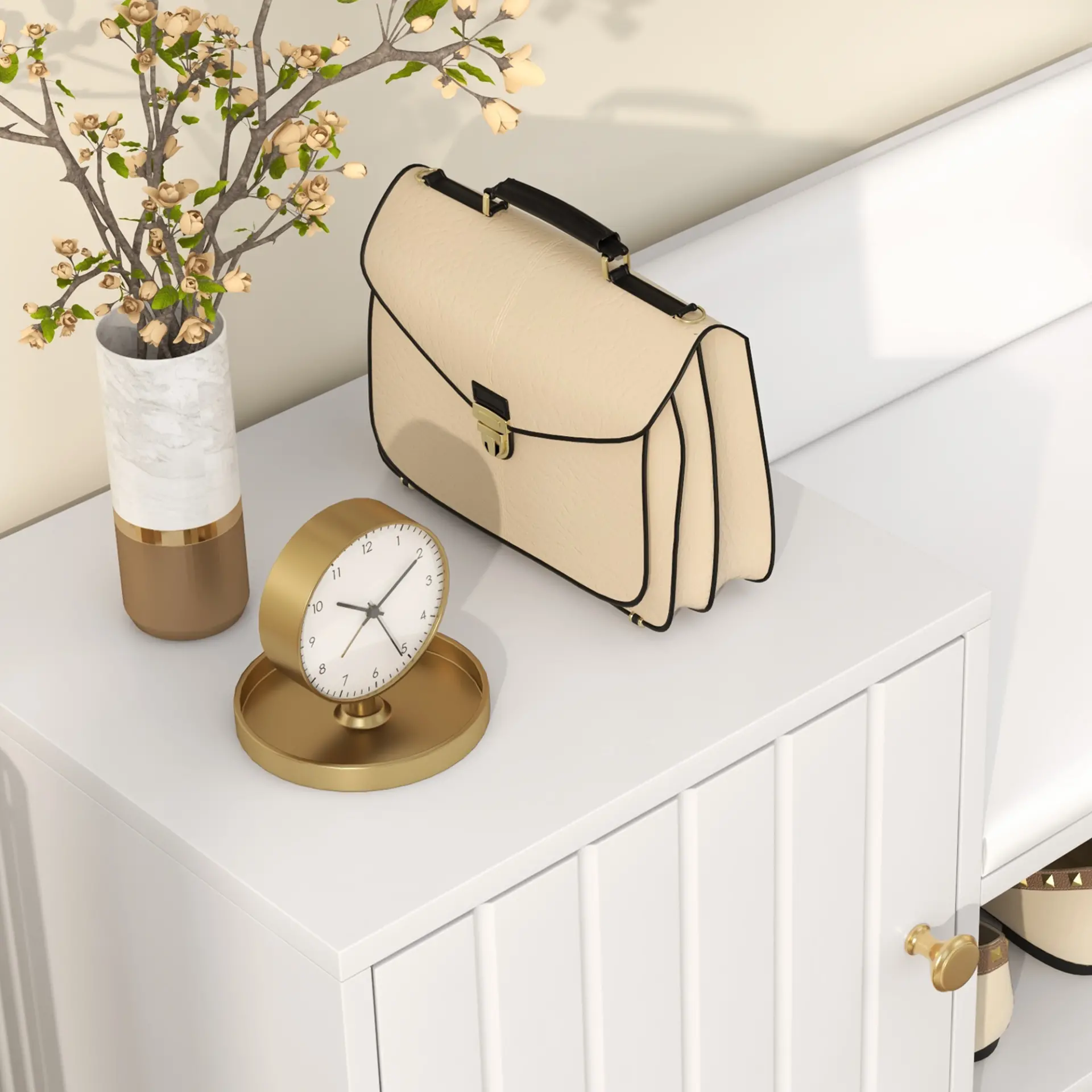- Minimal-glam infused design: Neutral colour of shoe storage cabinet is versatile. Gold coloured accents for a beautiful finishing touch