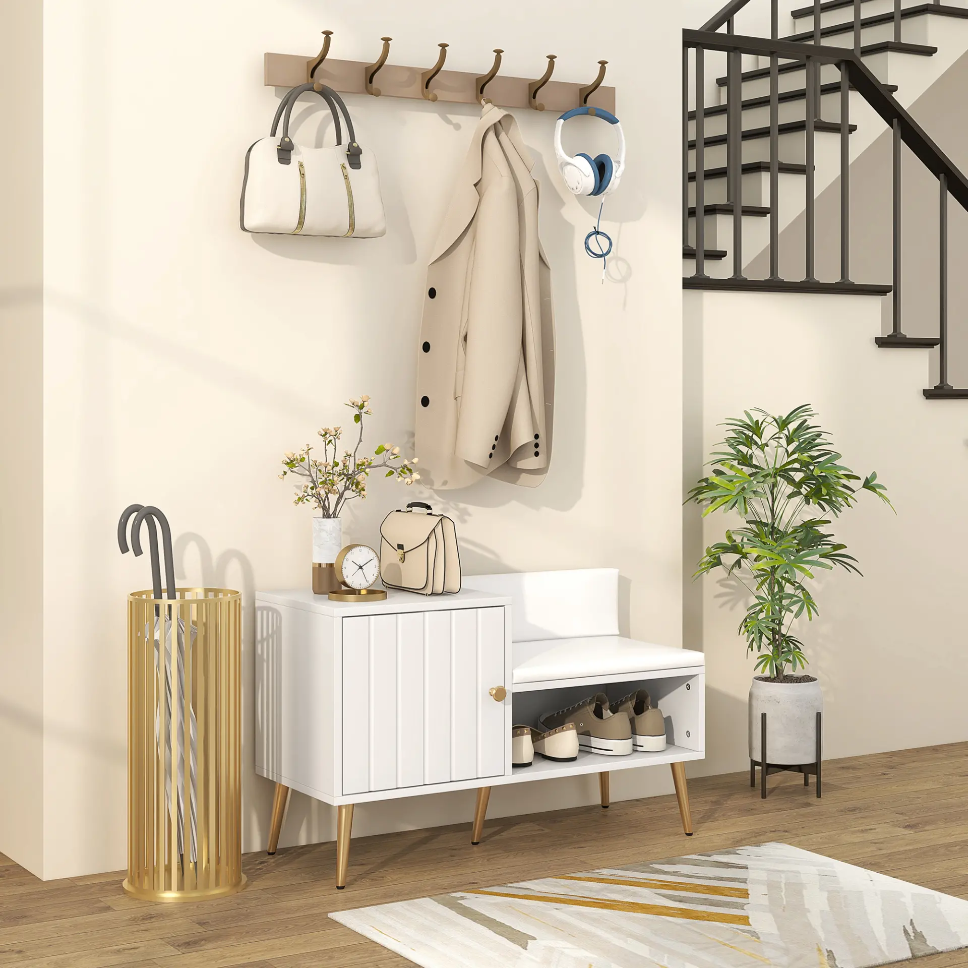 Organise footwear with this HOMCOM hallway bench. The multi-storage design comes with a compartment, side cupboard and padded seat: room for up to four shoe pairs, keeping smaller items, whilst giving you a comfortable place to sit when taking shoes off/putting them on. Hallway storage unit complete with metal legs for strong support. Maximum shoe size: UK 8.5.