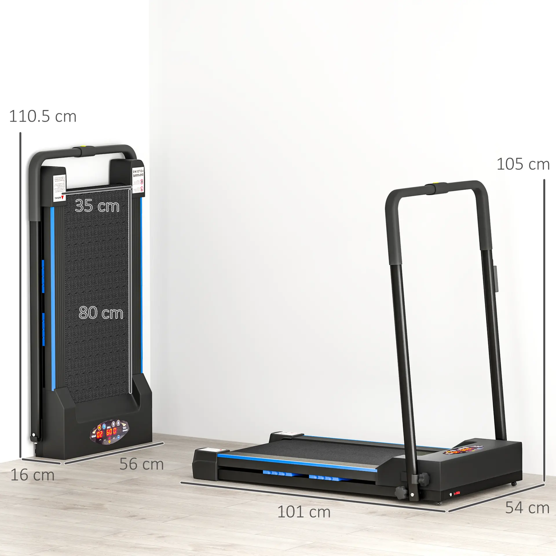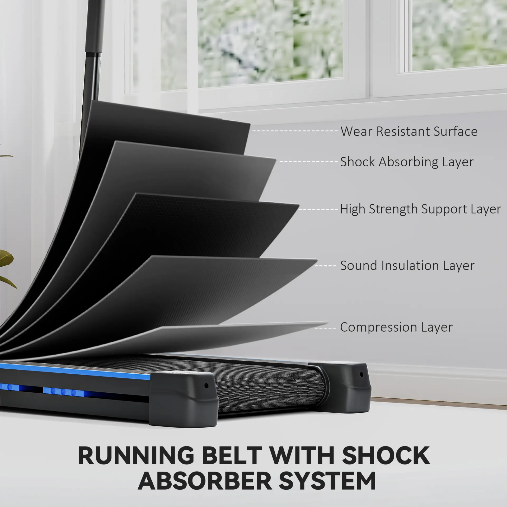 Get your fitness into gear with this HOMCOM walking treadmill. Designed to help you get fit and increase your stamina, its LCD monitor tracks time, distance, speed and calories burnt, keeping you on top of your goals. An emergency button and safety key ensure it stops immediately when needed, keeping you safe. After your workout, fold the treadmill for easy storage and use the wheels for easy transport. Great for offices and homes, it keeps you active indoors.