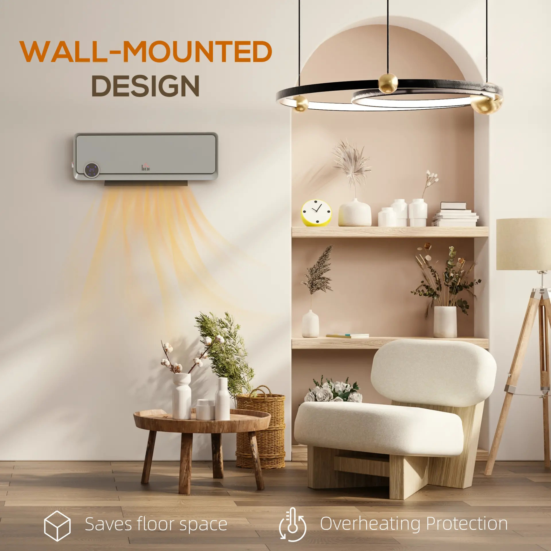 - On-wall, downflow design to keep you warm from above, with 30 oscillation to cover a larger area