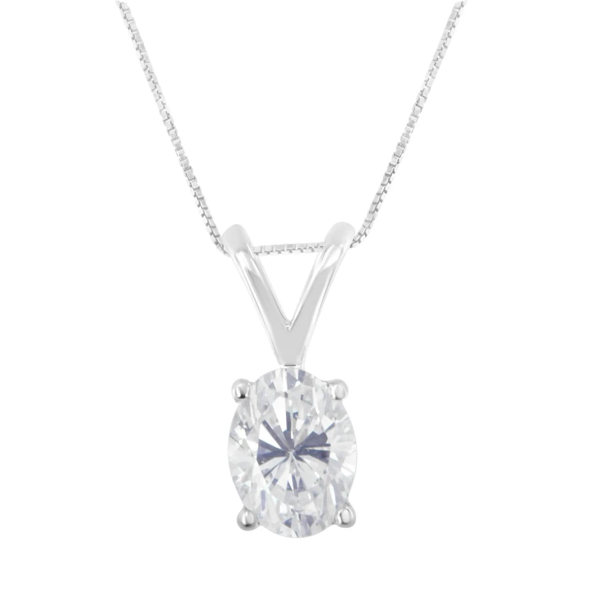 A brilliant 3/8ct oval cut diamond is highlighted in this classic four prong pendant. The pendant delicately hangs from a rolo chain. This 10k white gold necklace is perfect for any occasion.