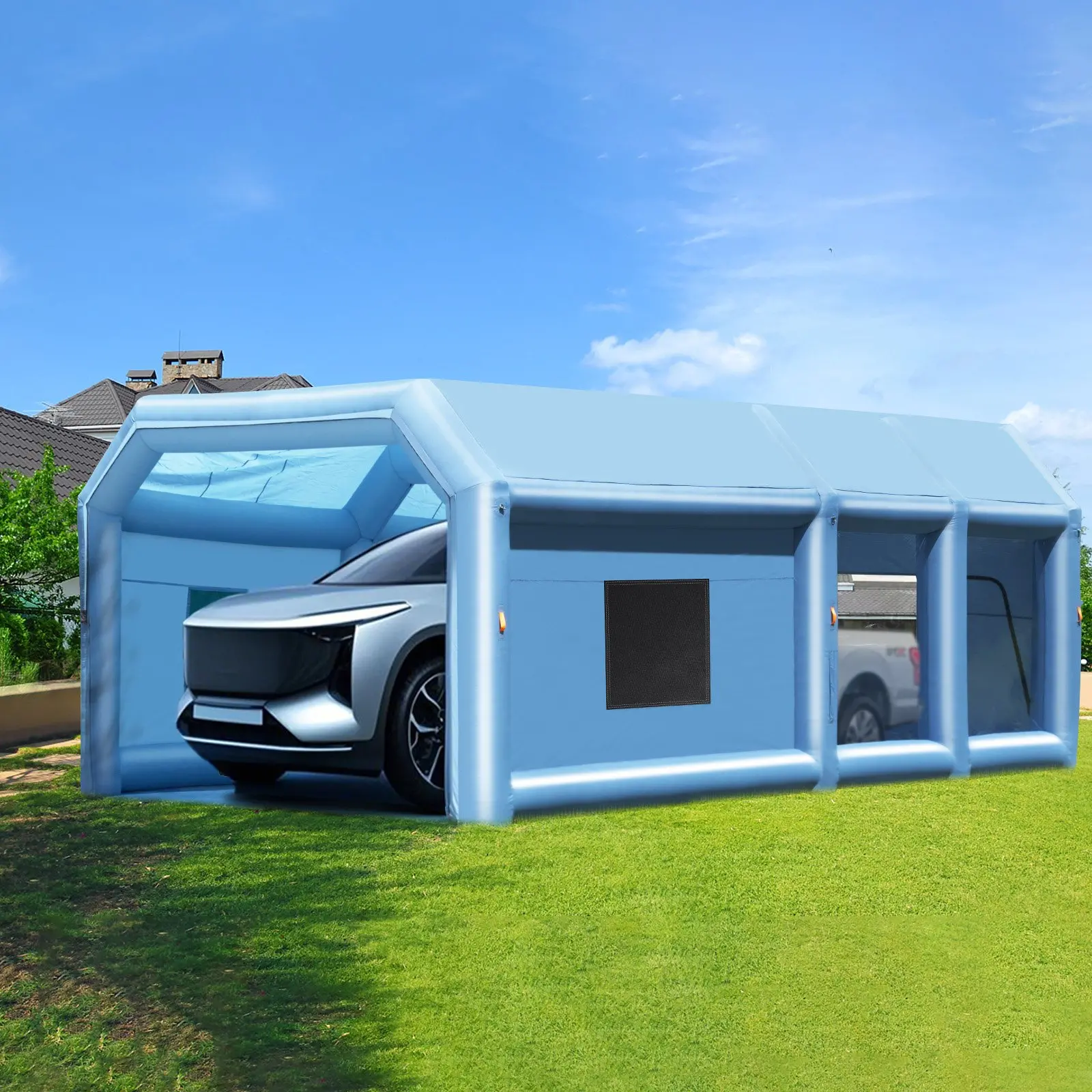 KFFKFF Portable Inflatable Painting Enclosure, Dimensions 32.8 x 21 x 14.8 ft, Equipped with 1100W+750W Robust Air Movers and Air Purification Setup, Suitable for Oversized Trucks, Vans, and Heavy Equipment