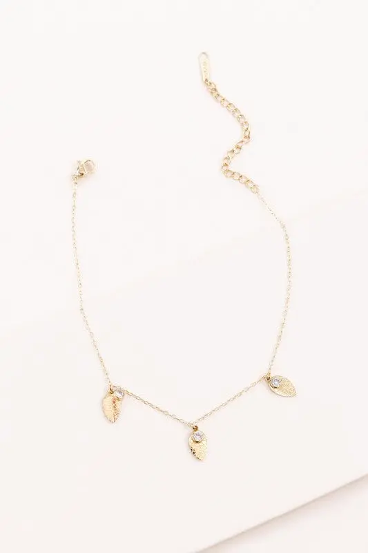 Leaf and Rhinestone Chain Anklet