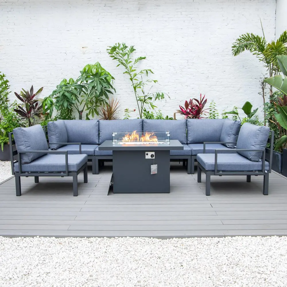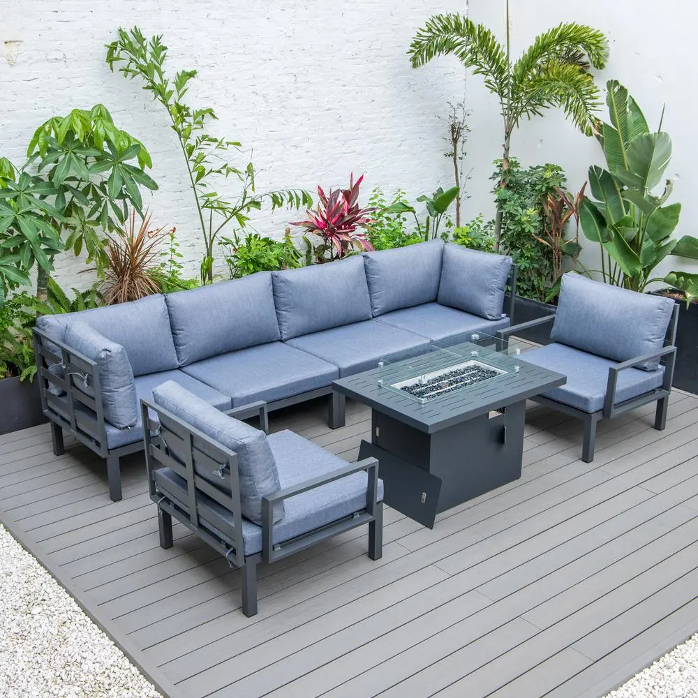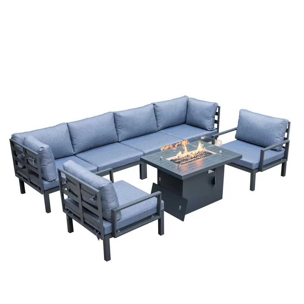 Crystal Stones included to beautifully accent the flames, Fire Pit Fuel Type propane, 55,000 BTU, Gas Tank Storage, Gas tank not included, No.7 Battery Ignition Type, Batteries not included This all-in-one Chair with modular design allows you to remove and add the arms and back To make an Ottoman, armchair, corner chair, or armless chair so that you can set up your patio any way you like Plastic floor caps Hide the Screws and will prevent you from scratching your patio Made With Strong & Durable Powder-coated Aluminum That is resistant to Rust, UV, Weather, Water, And fading The cushions come with ties that keep them from moving around or falling off Simple and Easy assembly required, assembly instructions with a complete tool kit will help you assemble the chair Fast And without any difficulty