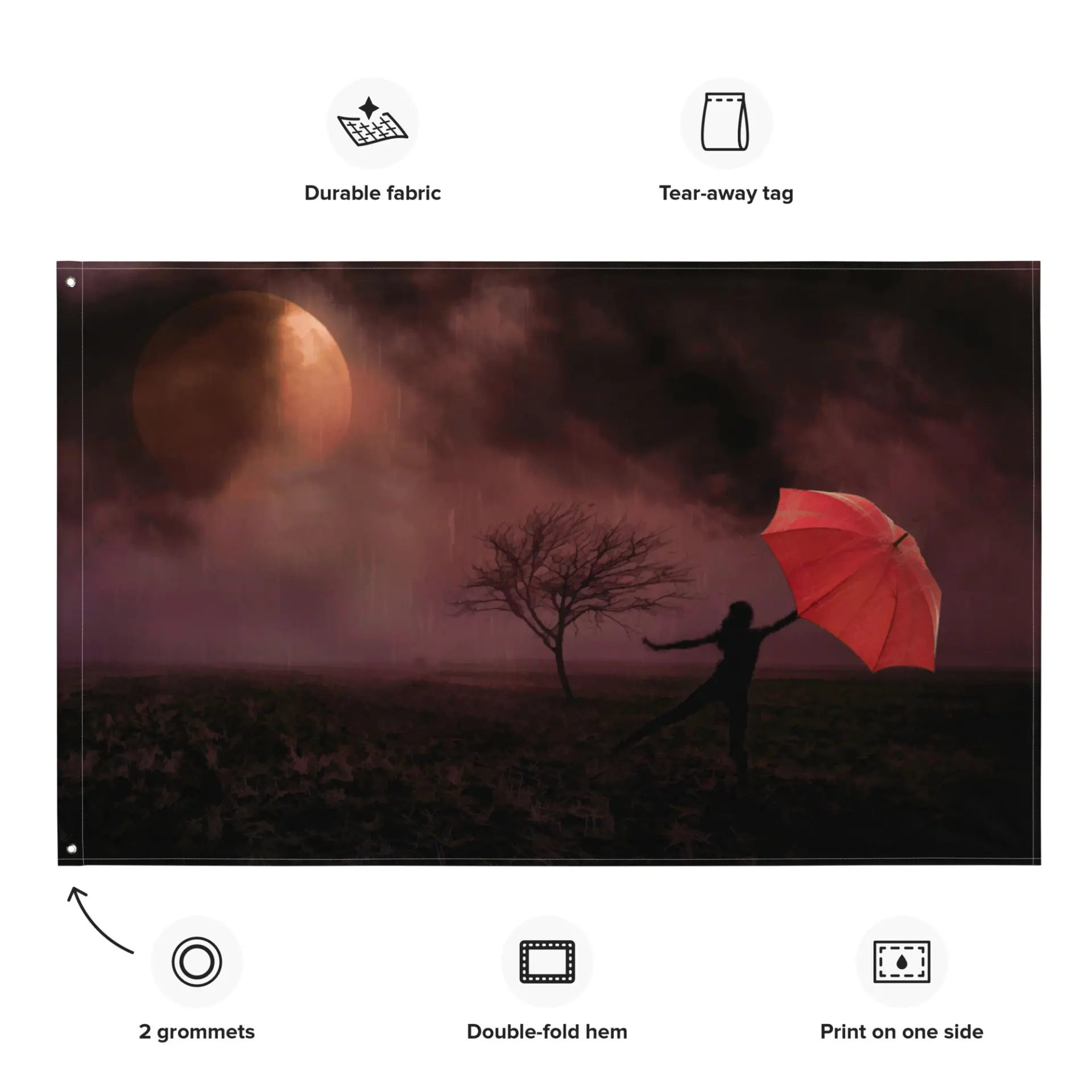 You can use this versatile piece in lots of ways. You can hang it like a flag, put it on your wall like a decoration, or even use it as a pretty tapestry. No matter how you choose to use it, this easy-to-care-for interior decor will make any room look nicer.