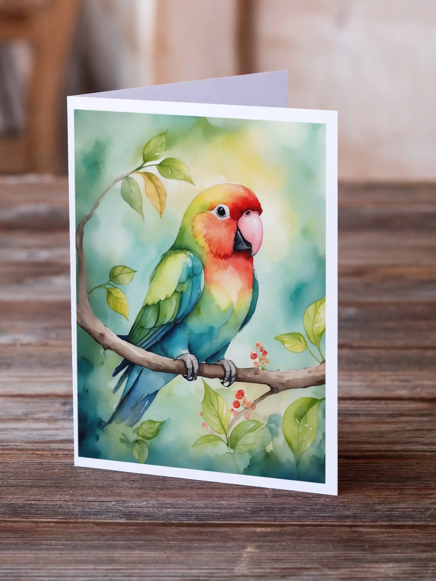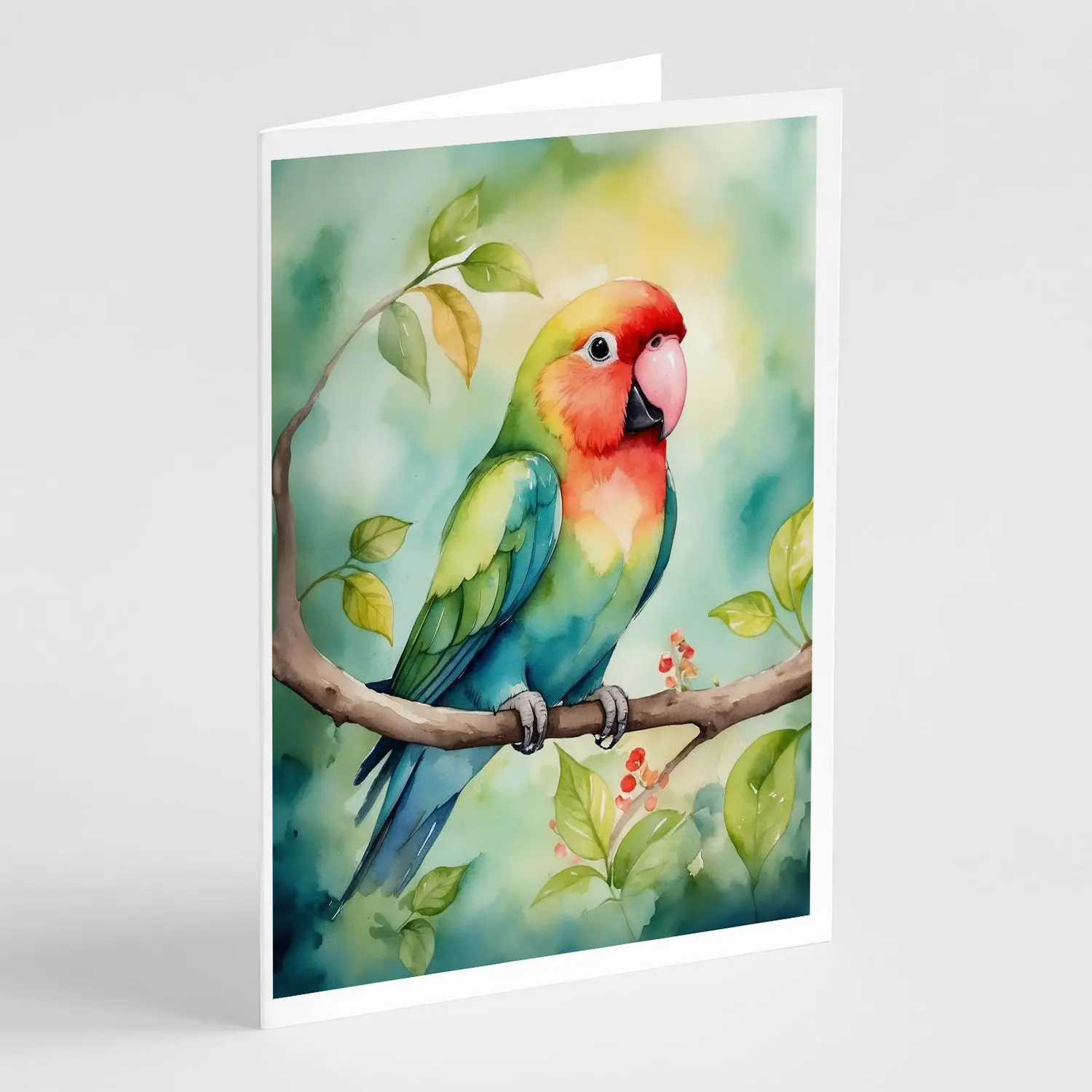 Greeting Cards Pack of 8 featuring breed specific Lovebird artwork. Celebrate special moments with Caroline’s Treasures Printed Greeting Card Pack. This pack includes eight beautifully folded 5×7 cards, accompanied by eight matching white envelopes. With blank interiors, these cards provide ample space for your personalized messages and heartfelt holiday greetings. Each card features captivating full-color artwork, meticulously printed in our facility on high-quality 80 lb cover stock or 216 GSM. The super smooth finish of the white cards enhances the visual impact of the artwork, creating a truly stunning presentation. Designed by our talented in-house artists or licensed artists, the artwork on these cards showcases their creativity and attention to detail. From vibrant illustrations to captivating designs, each card tells its own unique story. Whether it’s for birthdays, anniversaries, holidays, or any special occasion, Caroline’s Treasures Greeting Card Pack is the perfect way to convey your heartfelt sentiments. Share joy, love, and warm wishes with these exquisite cards and make every moment unforgettable.