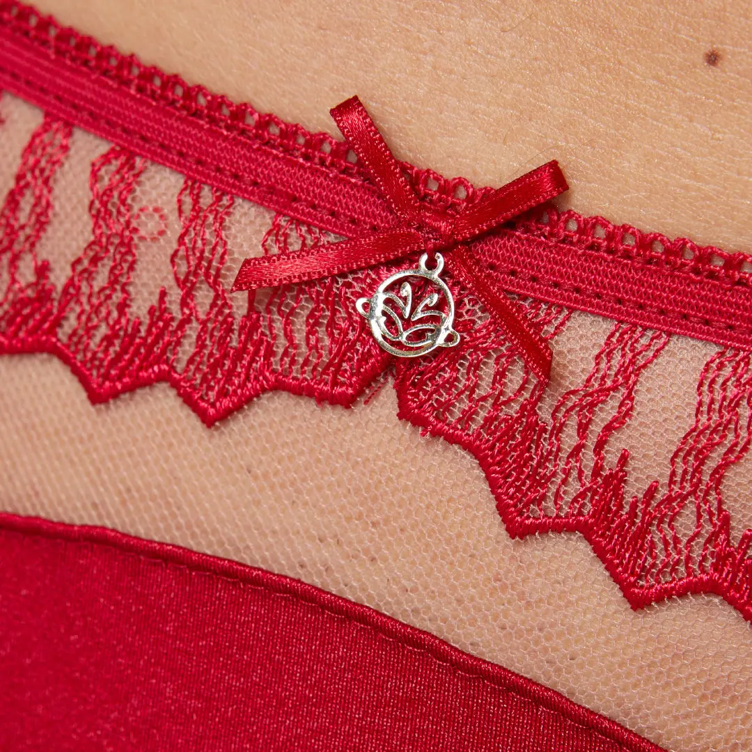 Semi-sheer low rise thong panty by Gorteks Lingerie. Feminine thongs made of smooth fabric decorated with beautiful embroidery.