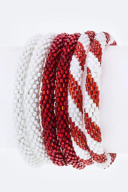 Maroon & White Nepal Roll Up Bracelets Set