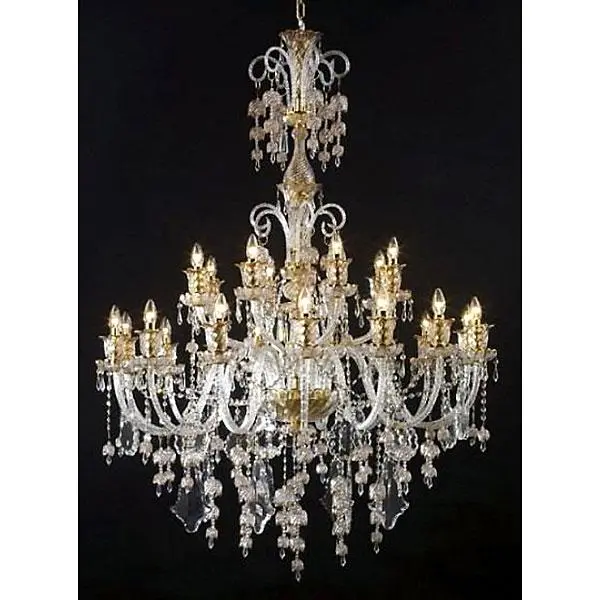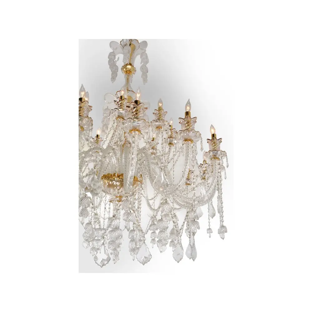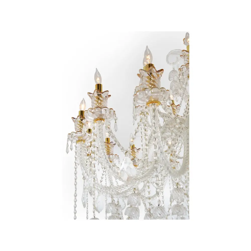 Elevate your space with the grandeur of the Marseille Grand Crystal Chandelier. This larger model mirrors the exquisite design of its smaller counterpart but is tailored for more expansive areas, weighing 104.5 lbs and requiring 24 E12, 60W bulbs. It features the same high-quality steel, crystal, and glass construction, with crystals imported from Egypt. This chandelier is a statement piece that not only lights up a room but also adds a touch of timeless sophistication to any large space.