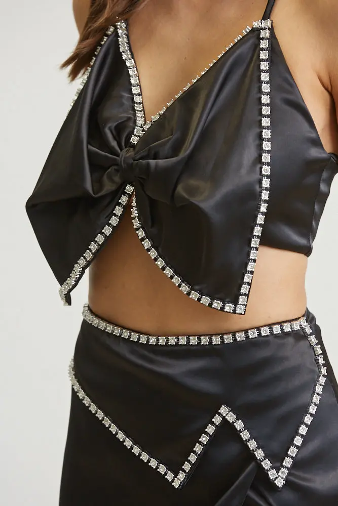– HIGH WAIST SKIRT WITH RHINESTONE DETAILING