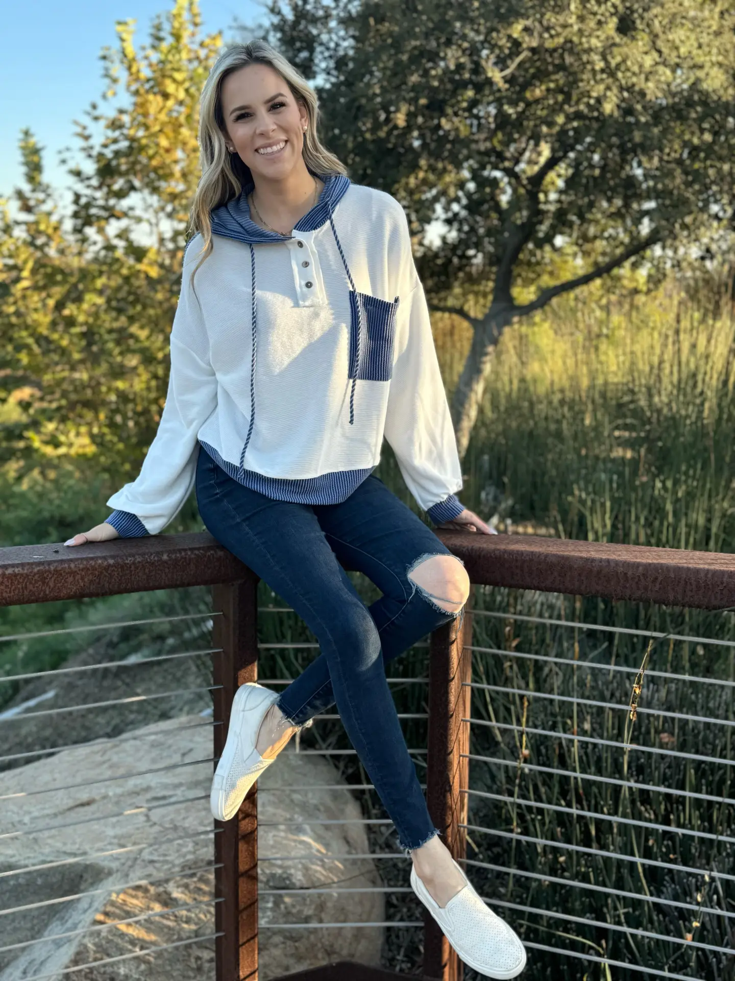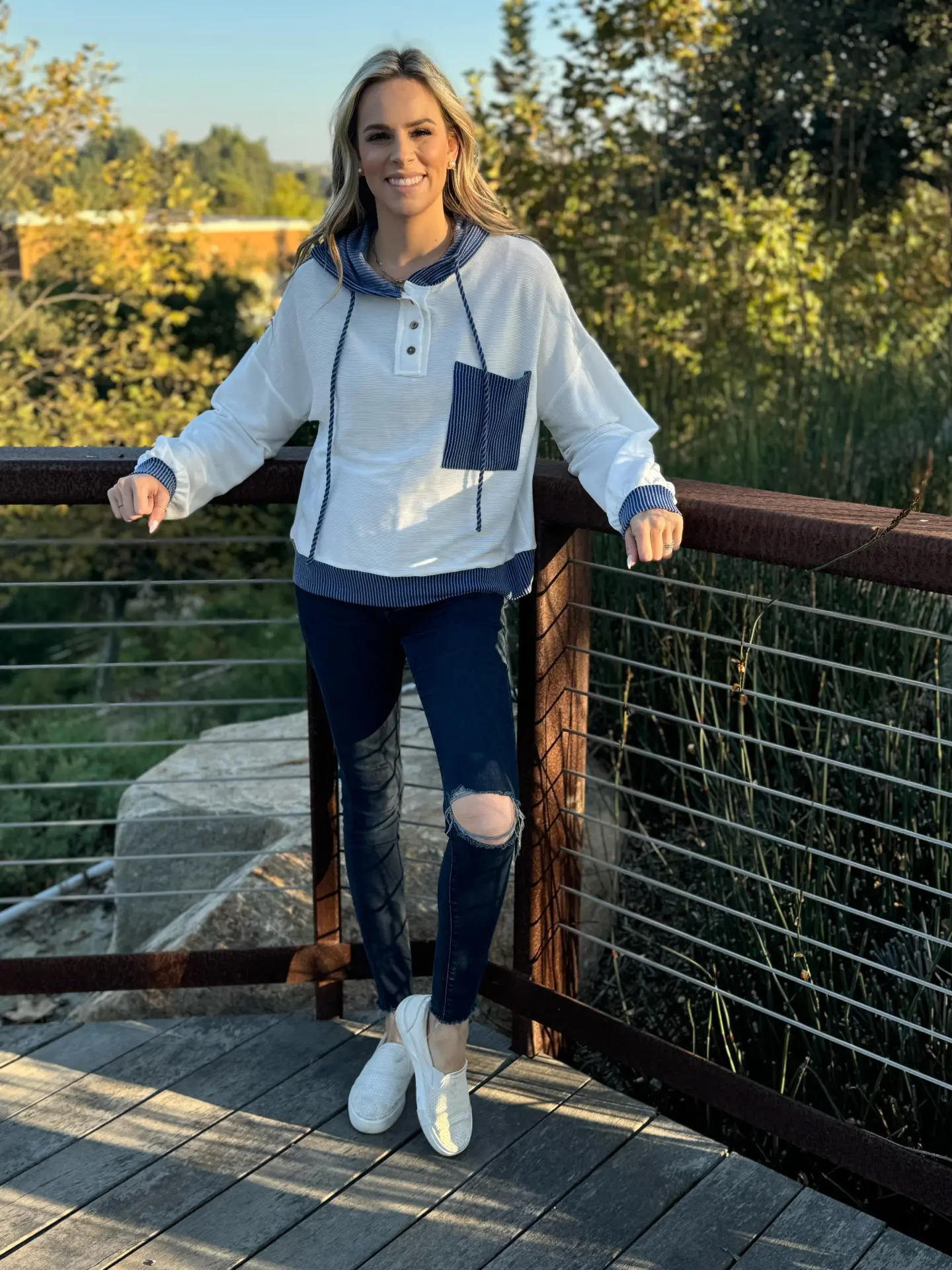 Get ready to be the talk of the town with our Millie Drawstring Hooded Top! This eye-catching pullover features a one-of-a-kind patchwork design and a textured fabric that will make you stand out from the crowd. The colorblock design adds an unexpected pop of color, while fun details like the button front, chest pocket, and drop shoulder design elevate this hoodie to the next level. Don’t miss out on the fun – grab yours today!
