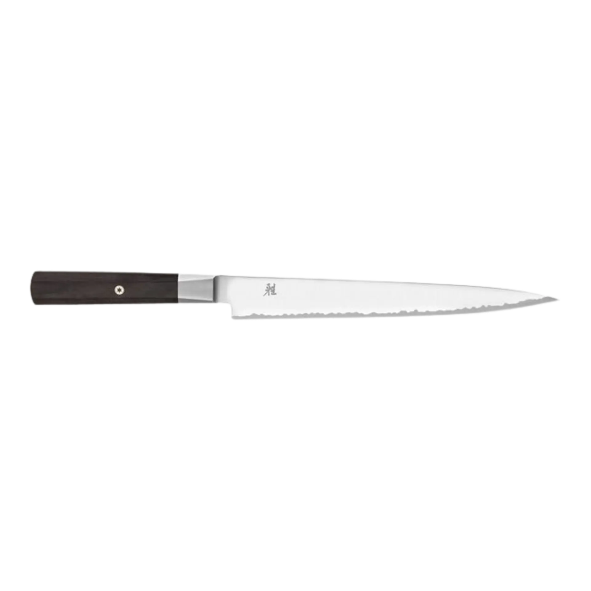 Slice with unparalleled precision using the MIYABI 4000 FC 9.5-Inch Sujihiki Knife. Expertly designed for carving meats and fish, this premium knife is handcrafted in Seki, Japan, from FC61 fine carbide stainless steel with an impressive 61 Rockwell hardness. The ice-hardened FRIODURx2 blade ensures remarkable durability, exceptional edge retention, and resistance to corrosion.