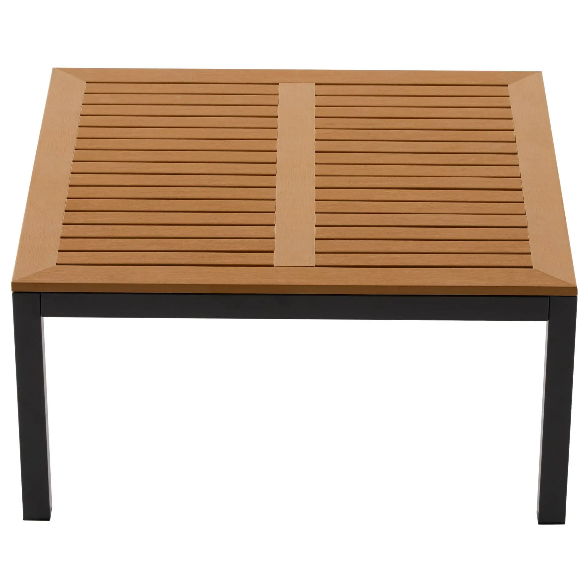 The set features a stylish coffee table with a WPC slatted surface that is water-resistant, providing a practical space for drinks and snacks.