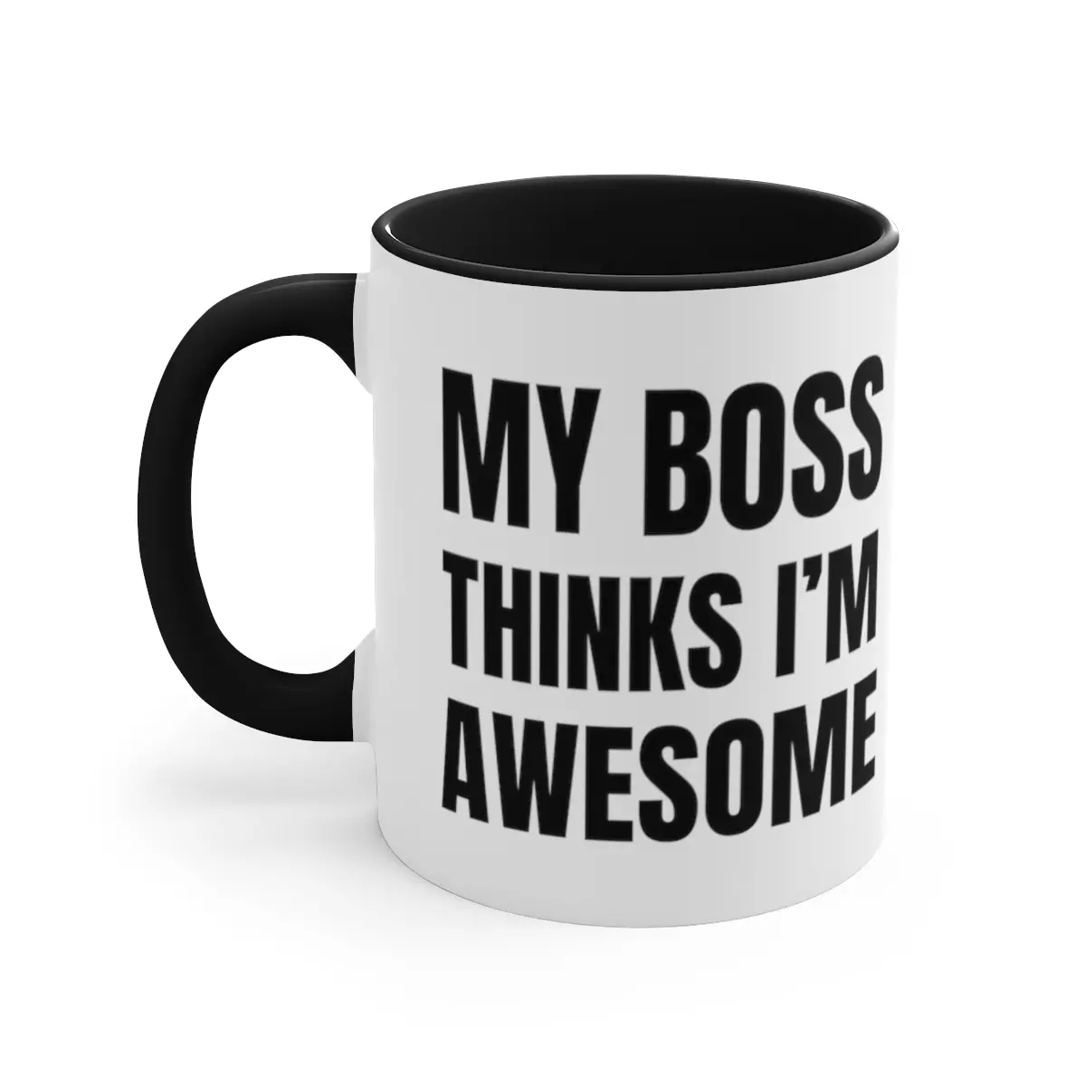 The My Boss Thinks I’m Awesome Coffee Mug is the ideal choice for anyone who enjoys a bit of workplace humor. It’s a fun way to show off your personality at work and enjoy your favorite beverage at the same time.