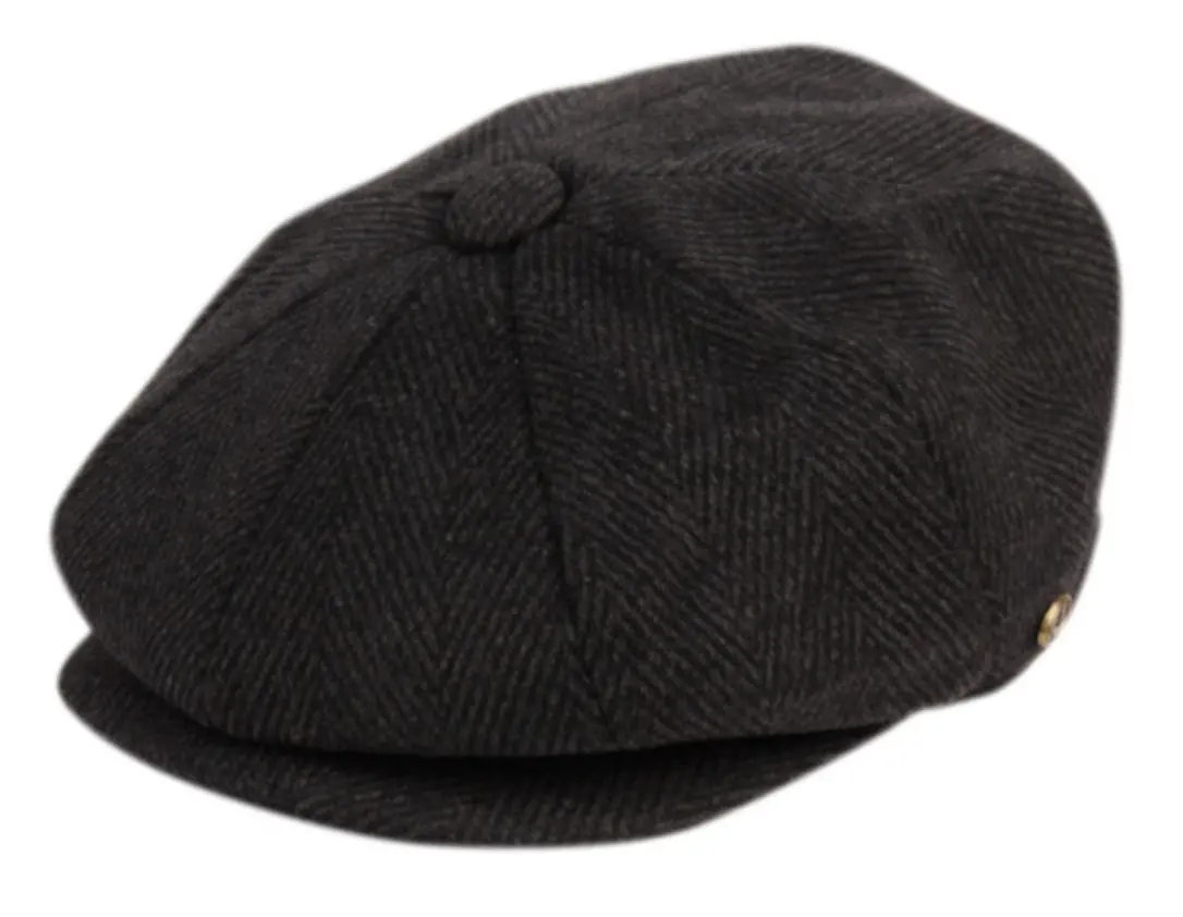 Look classic and timeless in our eight panel brushed herringbone wool blend newsboy/big apple cap with quilted satin lining.