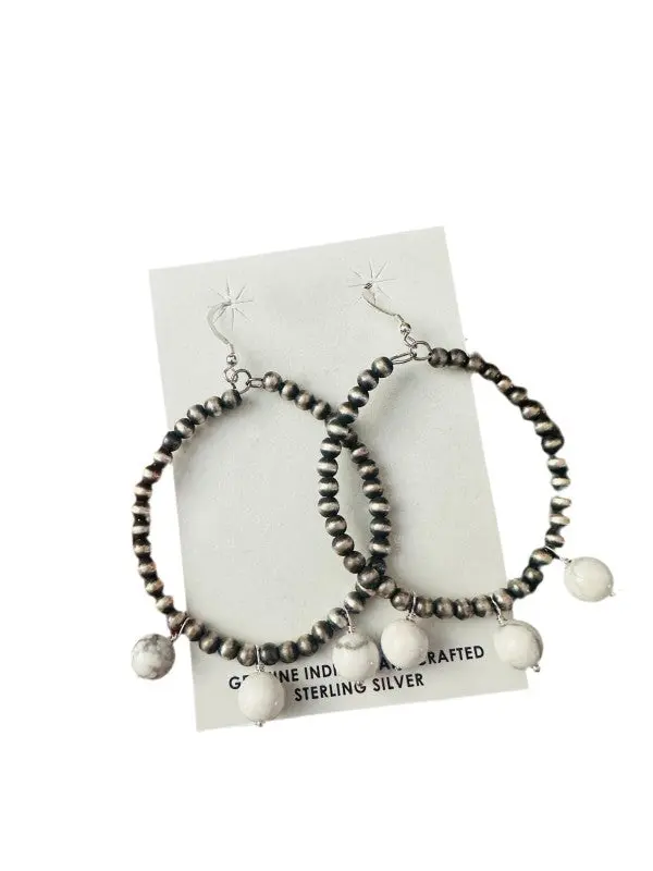 Beautiful Navajo White Buffaloand Sterling Silver beaded dangle hoop earrings. Such a great pair for any collection! These beauties measure 3 inches long 1 7/8 incheswide.