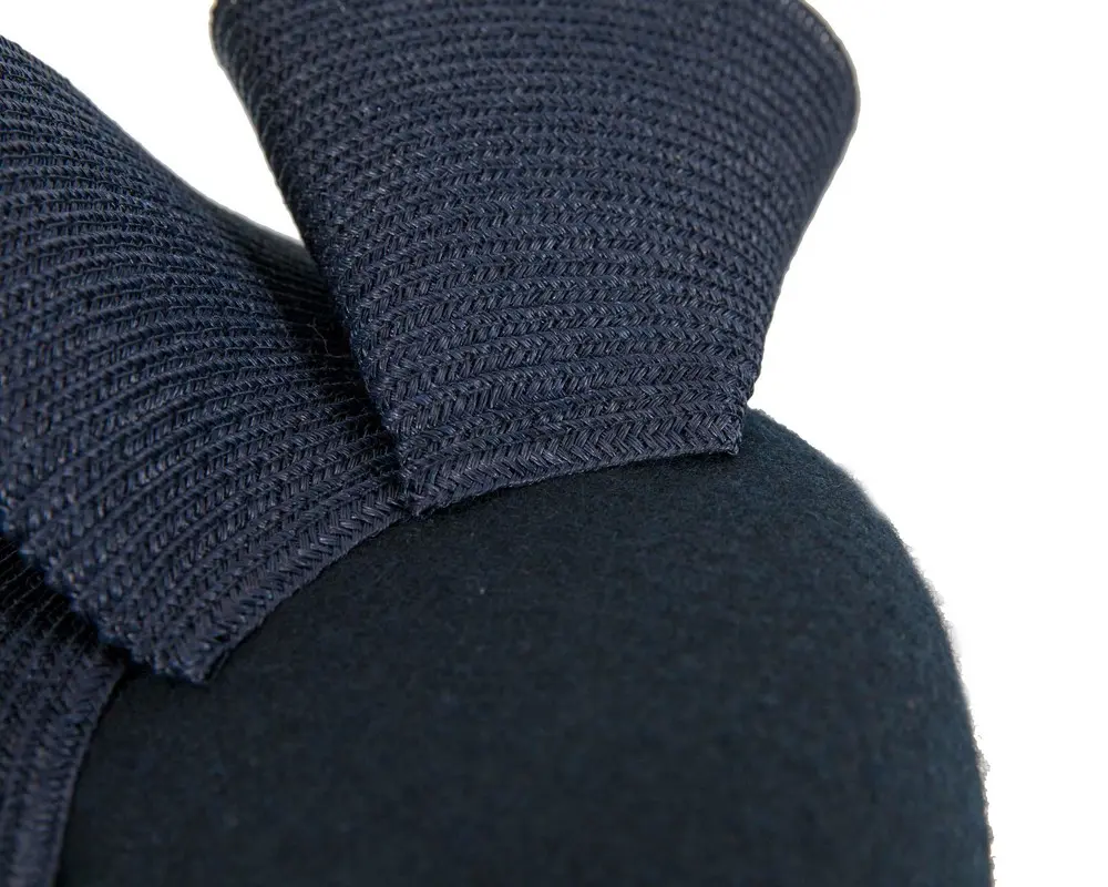 Created in the heart of Melbourne by our experienced milliners, we are proud to present bespoke navy winter pillbox racing fascinator by Fillies Collection. Classic pillbox base embellished with PU wave and placed on the headband.