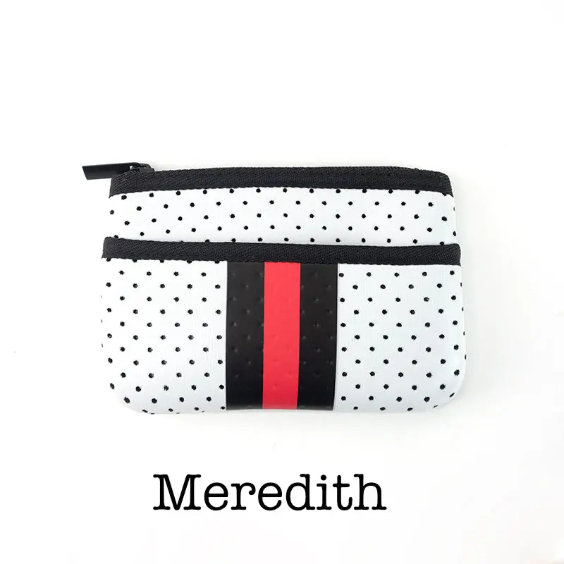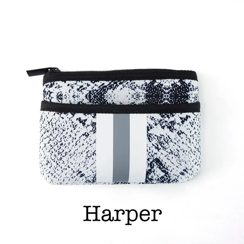 Designed to last, this NeopreneKey Purseis the perfect blend of luxury, style, and functionalityto take on the go! Theperfect everyday compact carry-all when space is important. 2 zipper closures are perfect for carrying your essentials, money, credit cards and the detachable wrist strap makes this small power key purse a great addition.