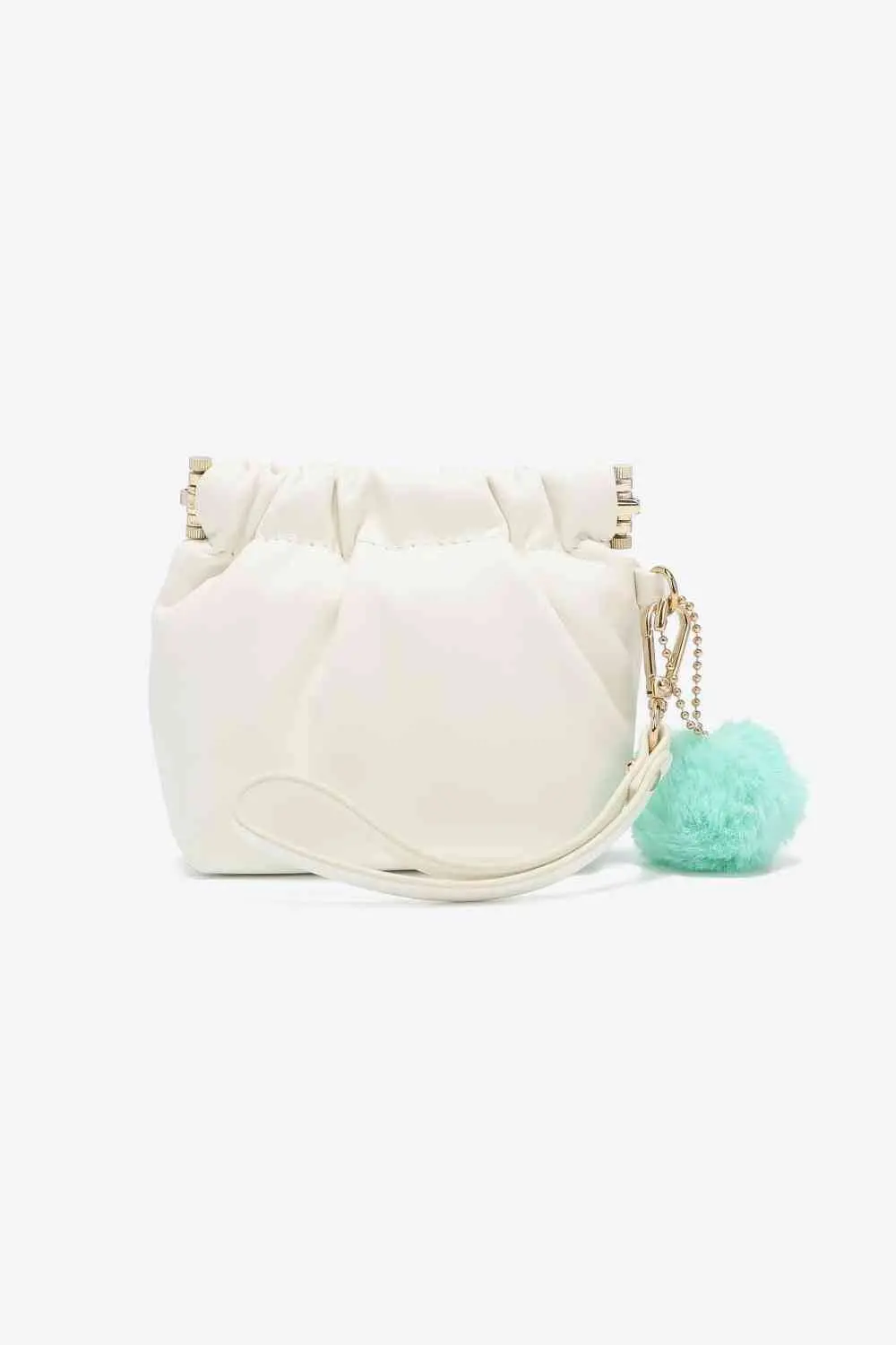 Crafted from premium faux vegan leather, this Pouch offers a cruelty-free alternative without compromising on style or quality. This pouch features a convenient metal spring closure, ensuring your belongings are secure and easily accessible. Its gold-tone hardware adds a touch of sophistication and elegance, elevating yourgenerallook. With dimensions of L 5.5″ x H 4.25″ x W 1.75″ (D), this compact Pouch is designed to accommodate your everyday essentials while maintaining a sleek and streamlined silhouette. Whether you need a compact wallet for your cards and cash or a chic holder for your cosmetics and small accessories, this pouch has got you covered. As a delightful bonus, the pouch comes with a detachable pompom keychain. The vibrant and fluffy pompom adds a playful touch to your Pouch while also serving as a practical keychain, making it easier to find your keys in a crowded bag or purse.