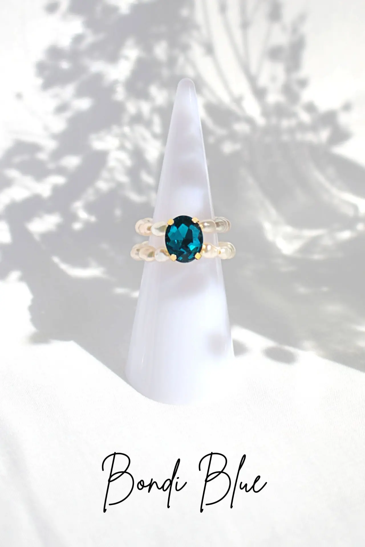 “Ocean Secret” | 3 Shades Blue CZ Freshwater Pearl Rings