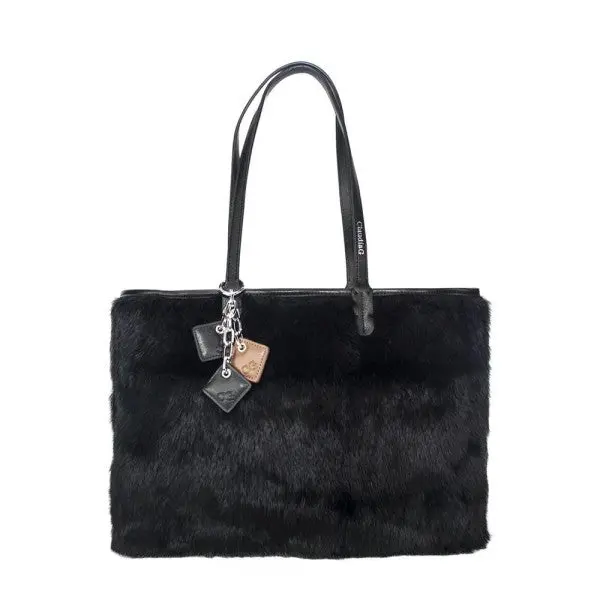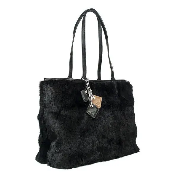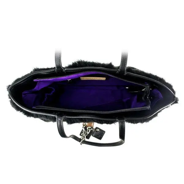 Hello fur! Made in luxurious rabbit fur and genuine leather, this shoulder bag is a show-stopper everywhere you go. Accented with the signature ClaudiaG Diamond drops, purple lining and inside zipper pocket.