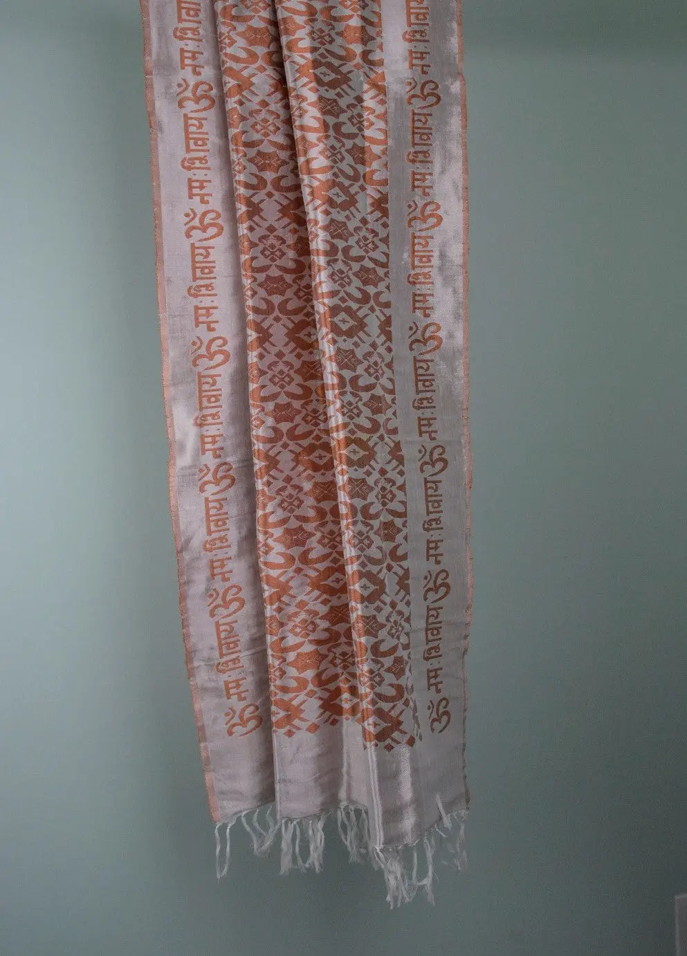 The artisan has handwoven woven the Mantra “OM Namah Shivay” along with the floral motif. The available colors are Copper, Yellow, and Pista Green.