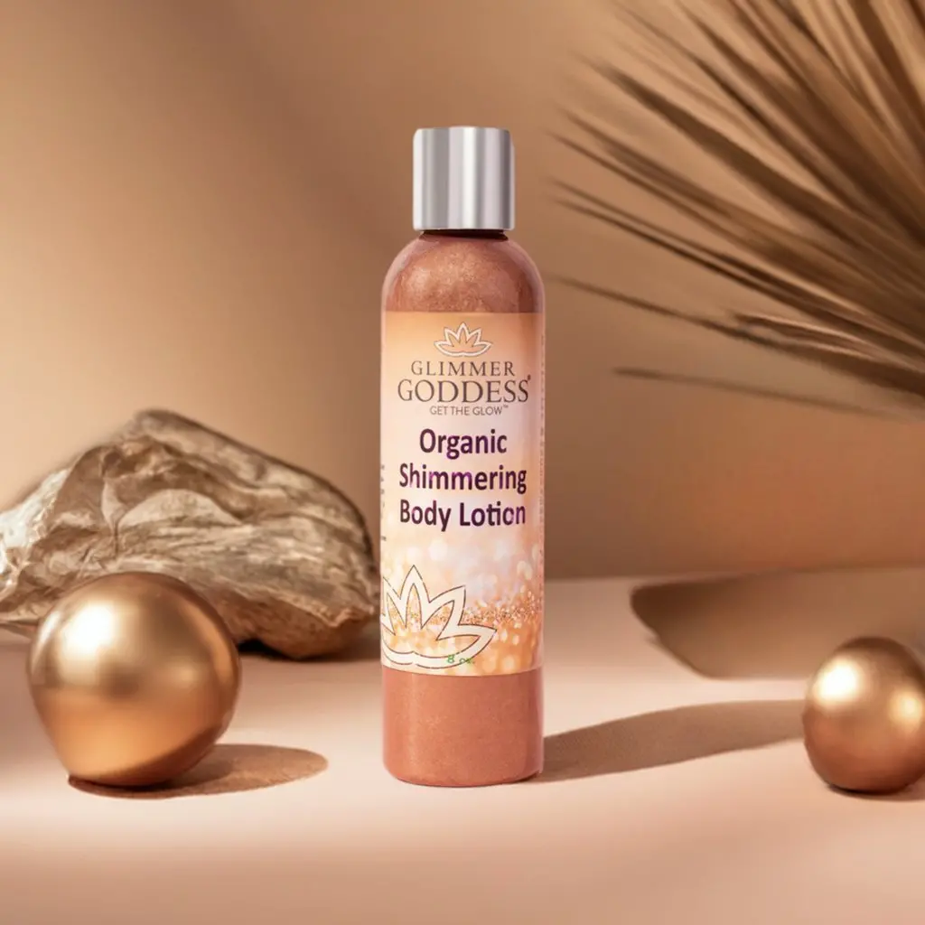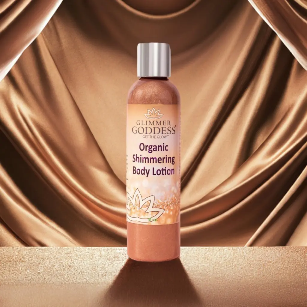 Experience the glow of nature with our Organic Bronze Shimmer Body Lotion, crafted with pure organic ingredients and natural mica dioxide for a dazzling, sun-kissed radiance. This lightweight, quick-absorbing lotion deeply nourishes your skin, leaving it smooth and luminous. Infused with an alluring fragrance, it delivers a subtle yet captivating shimmer while providing lasting hydration. Transform your skin into a radiant, bronzed goddess with this moisturizing, shimmering body lotion.