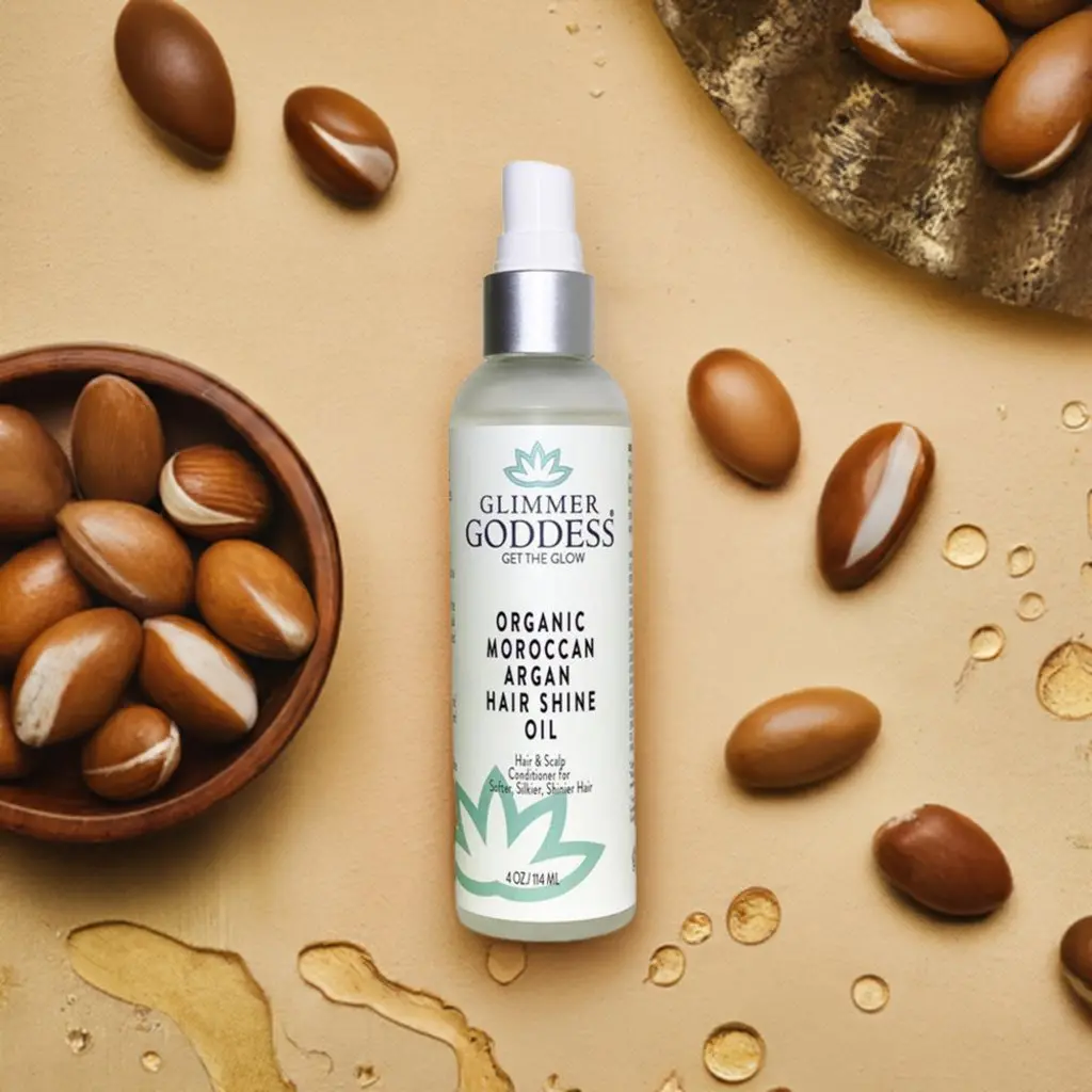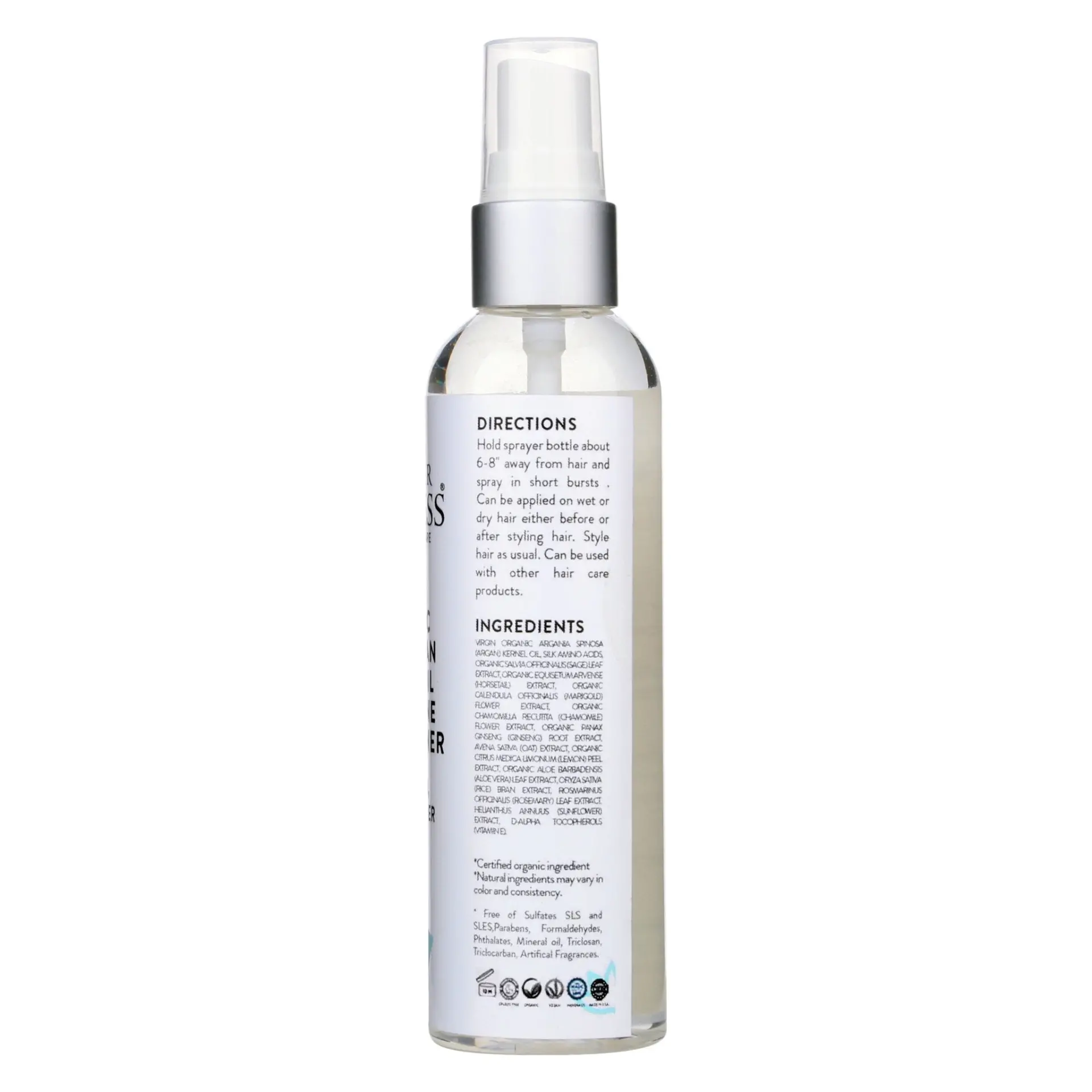 Our organic hair shine spray enriched with Moroccan Argan Oil enhances each strand with a luminous shine while deeply restoring moisture for a naturally healthy appearance. It rehydrates dry hair, smooths frizz, and repairs split ends without weighing hair down. Experience radiant shine and improved scalp conditioning in one refreshing spray.