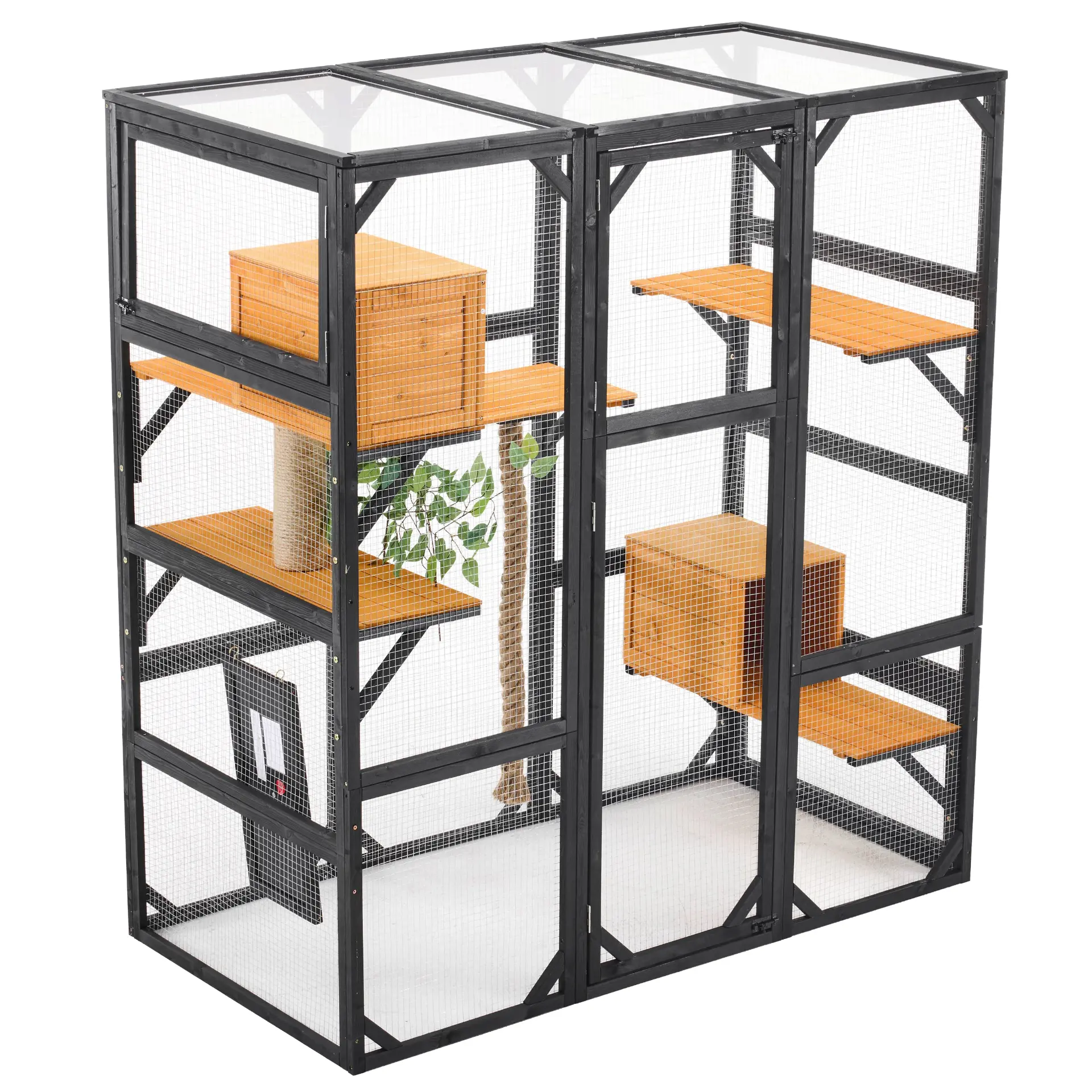 The cat enclosure includes two comfortable sleeping houses, providing safe and private spots for your cats to rest and sleep.